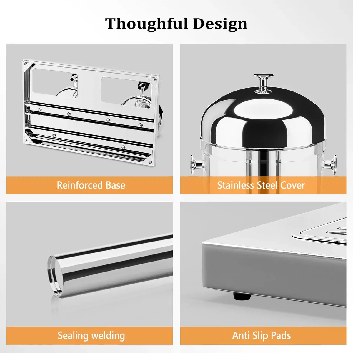 4. Goodbye to Leaking: Equipped with upgraded spout ,will fall vertically and will not splash and no leaks, allowing guests to pick up their drinks freely. And the drip tray of this beverage dispenser can effectively help reduce beverage spattering and keep the table top clean.