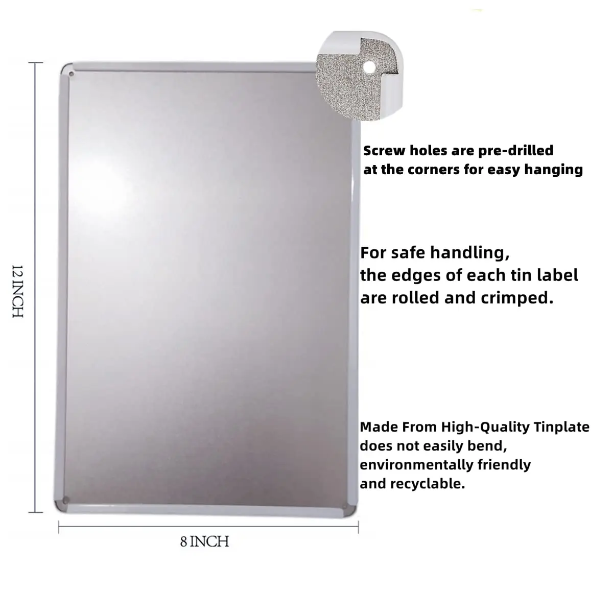 ·Size: 8" x 12" (20x30cm). Weight:4.9OZ/139g.These tin signs are made of high quality metal. These eye-catching signs are not easy to bend, harmless, will not rust and fade.It is environmentally friendly and recyclable.