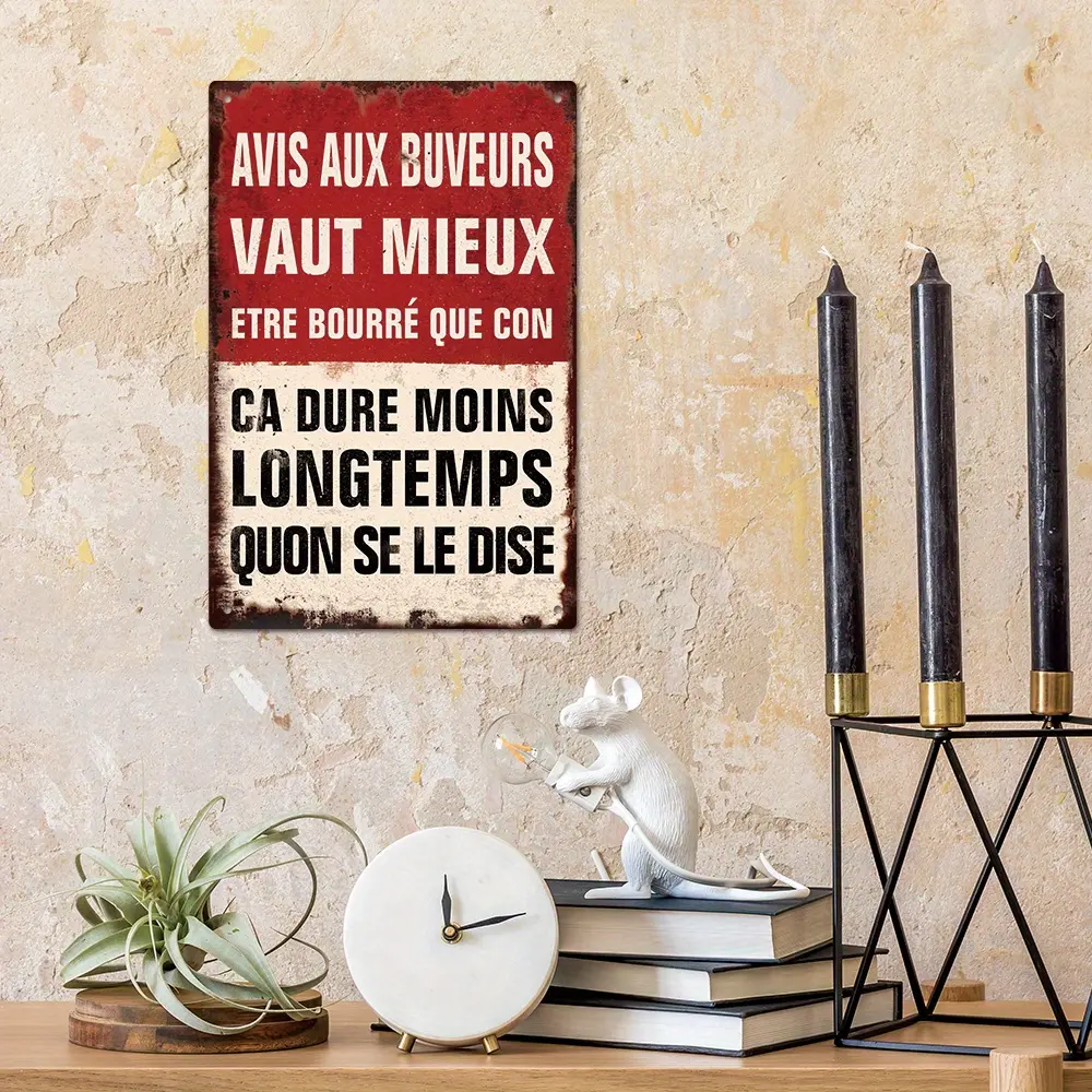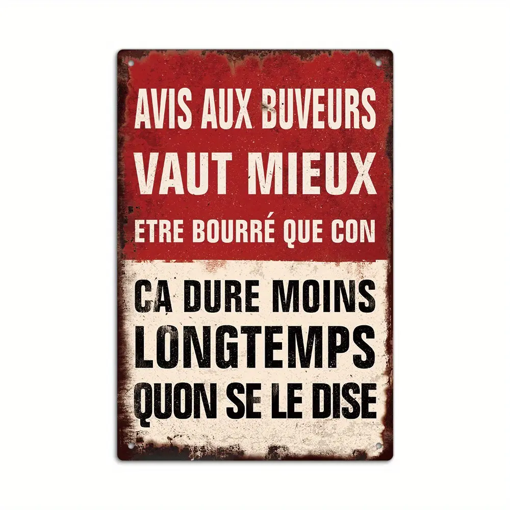 French Vintage Metal Sign, Classic Wall Hanging Multipurpose Plaque, "Avis Aux Buveurs" Humorous Quote, Decorative Art for Home, Bar, Pub, Farmhouse, No Electricity Needed, Durable Material