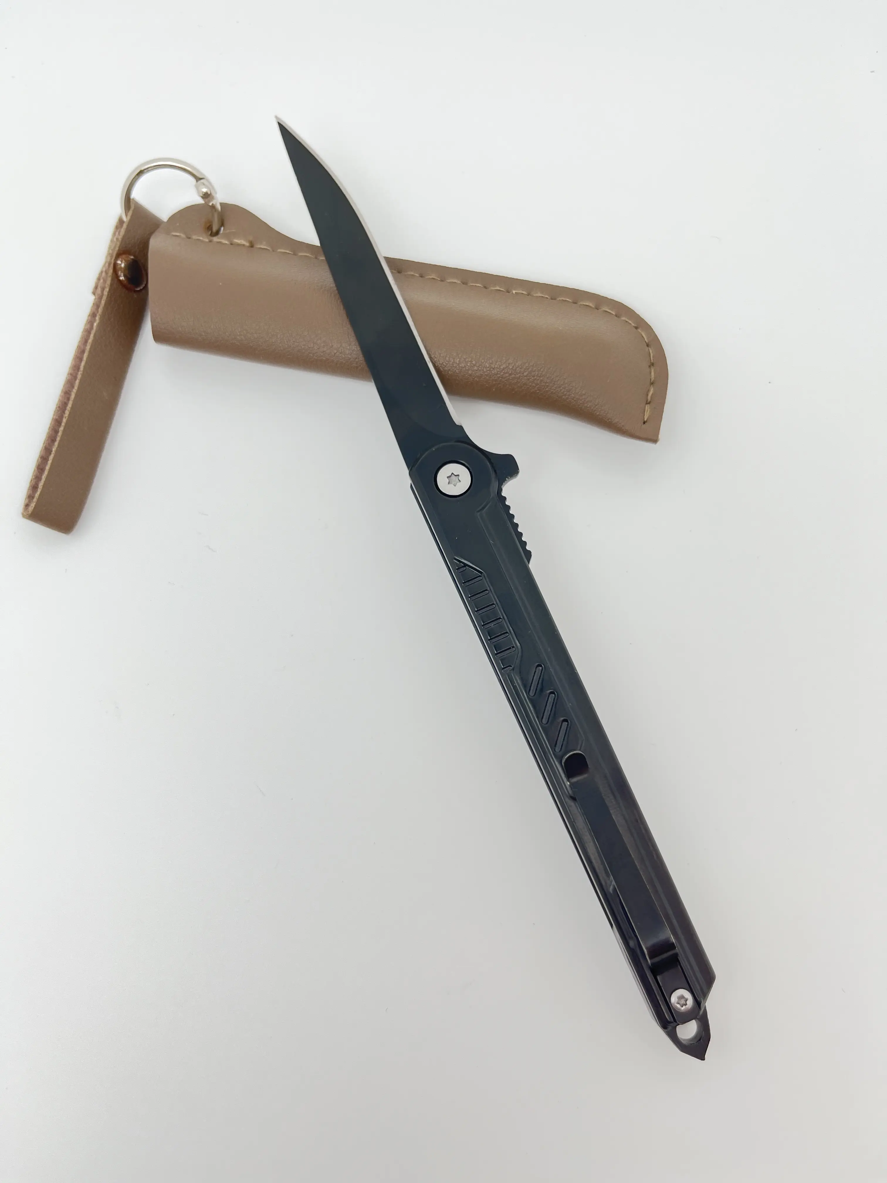 Slim folding knife with leather sheath, EDC tool, outdoor knife, suitable for camping, kitchen, peeling