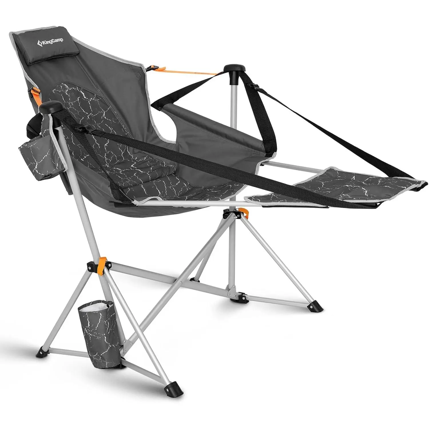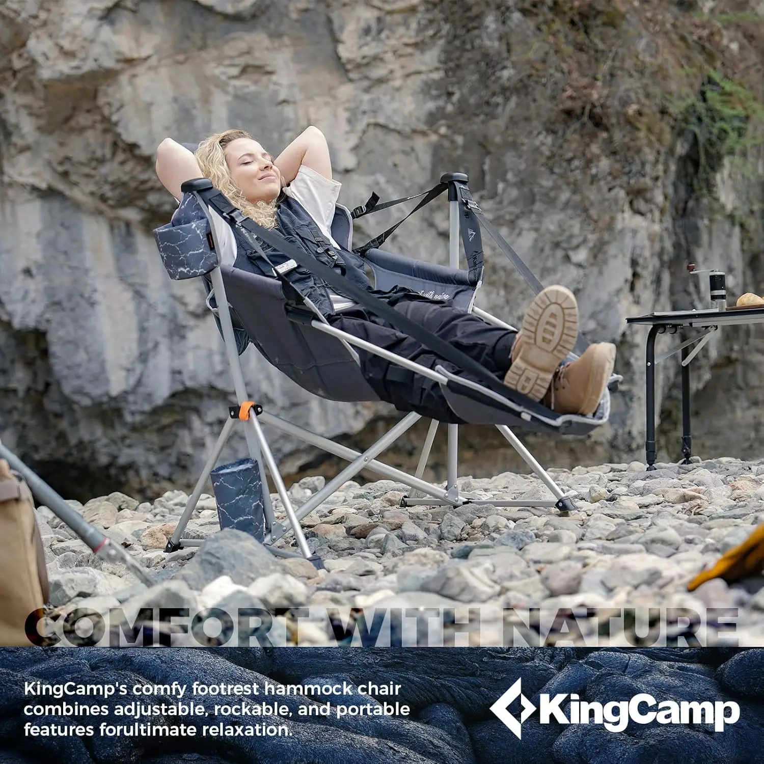 KingCamp Hammock Chair with Footrest – Heavy Duty Swinging Rocking Camping Chairs for Adults up to 400lbs, Folding Portable Oversized Rocker with Cup Holder & Pillow for Outdoor Beach Lawn RV Sports