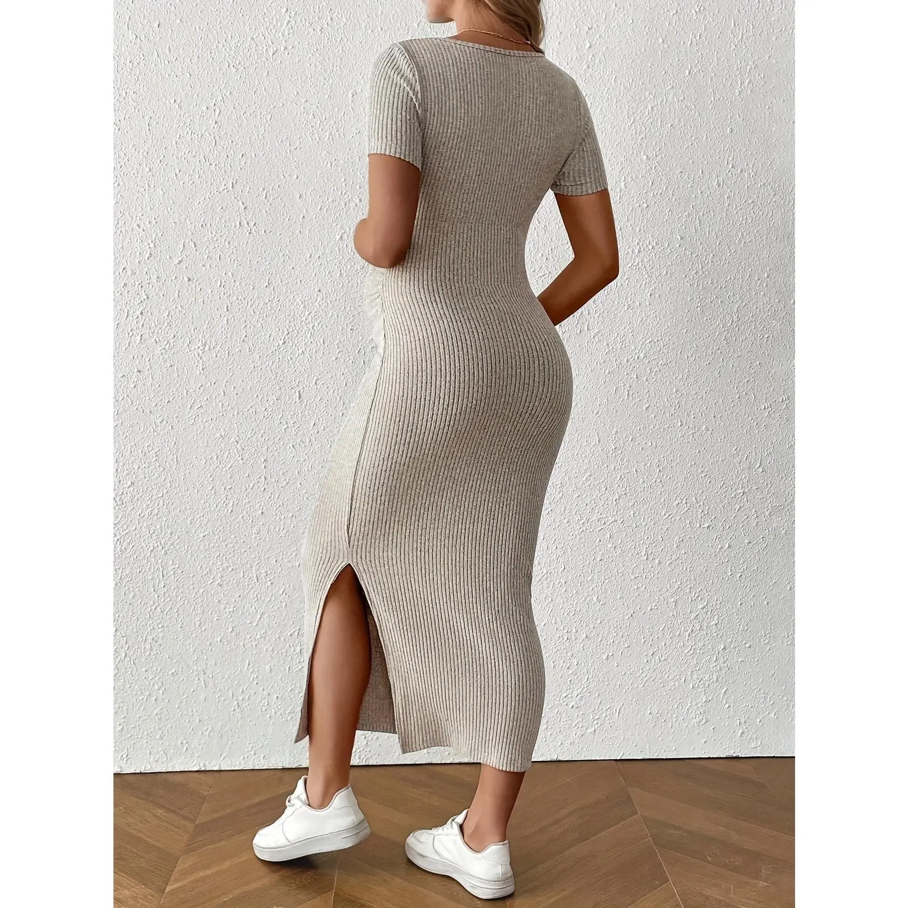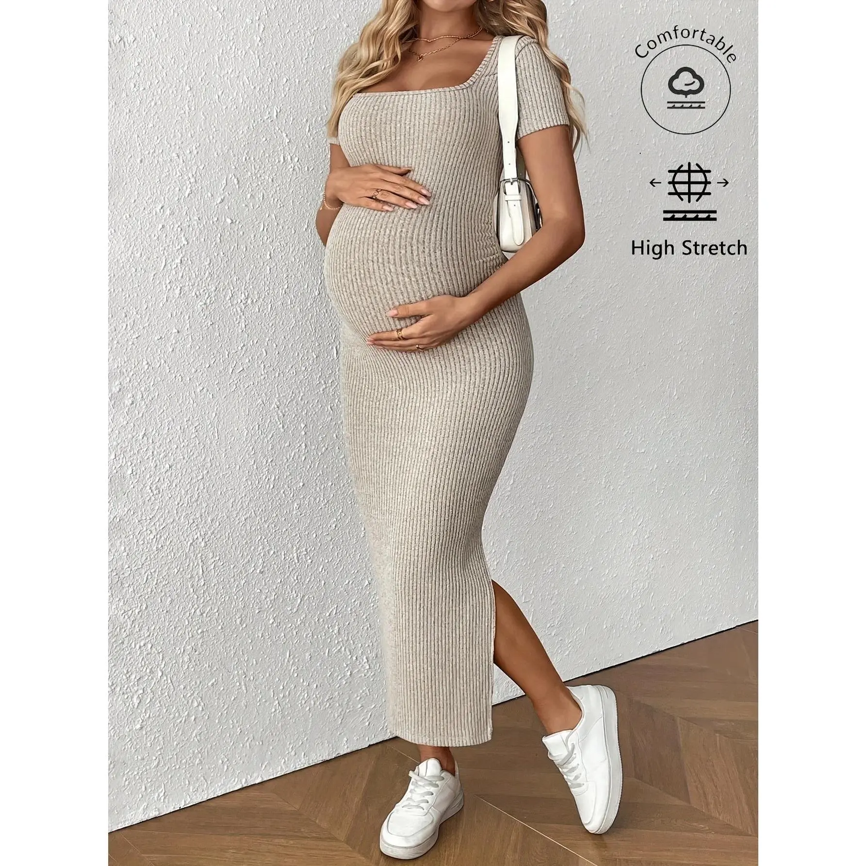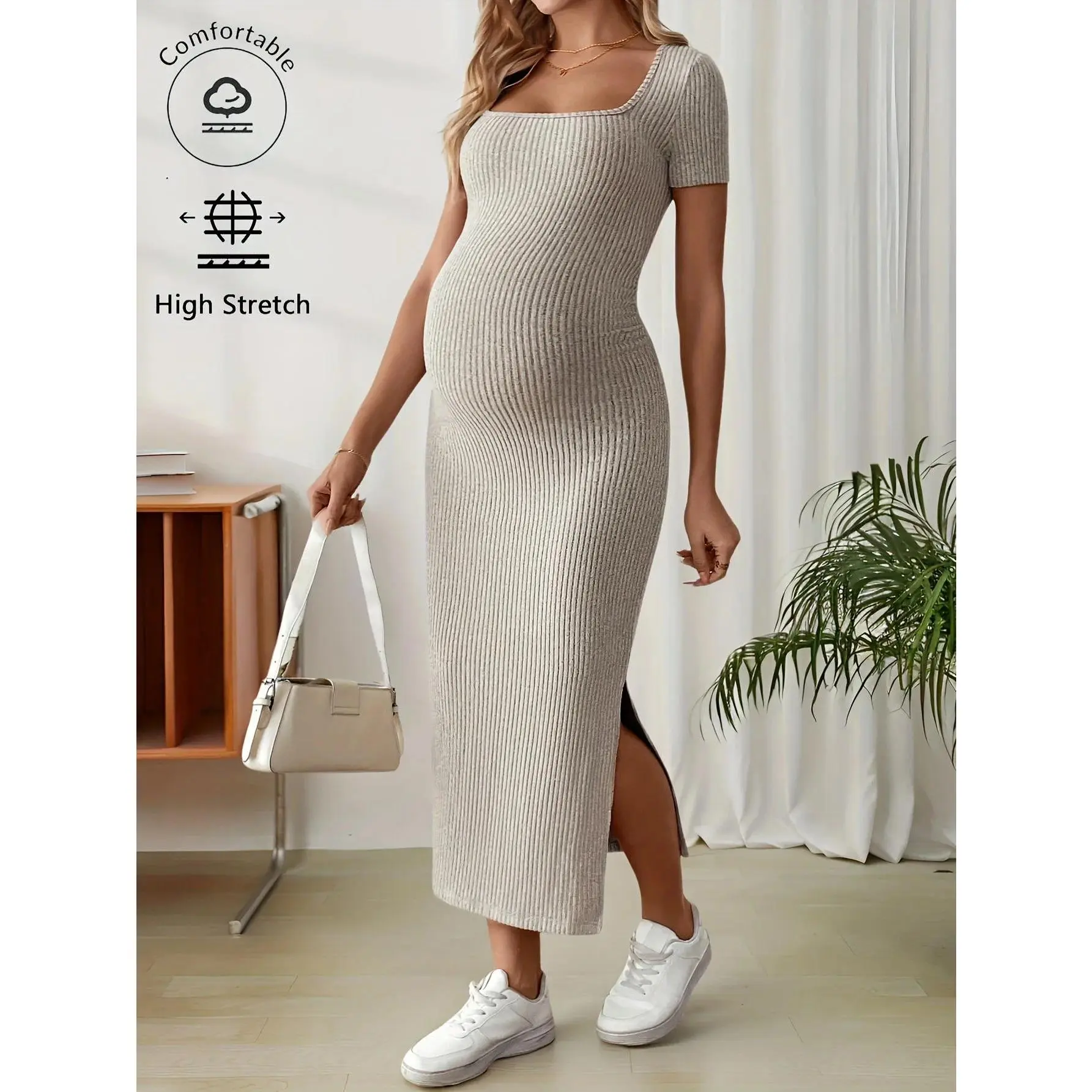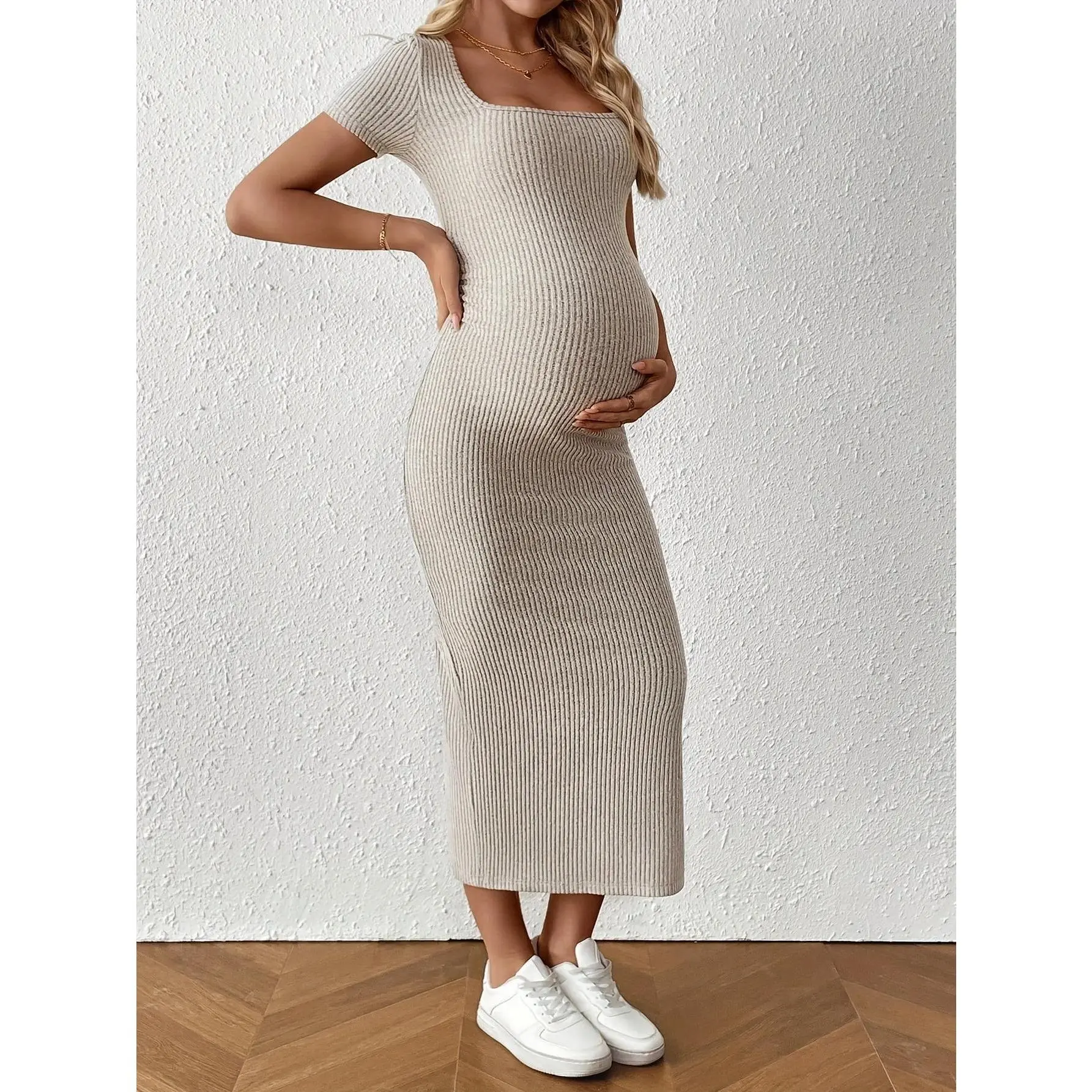 This short-sleeve dress is perfect for pregnant women. It features a hip-hugging design that flatters your figure. The dress is comfortable, ensuring you feel at ease throughout the day. Ideal for casual outings, it combines style with practicality.