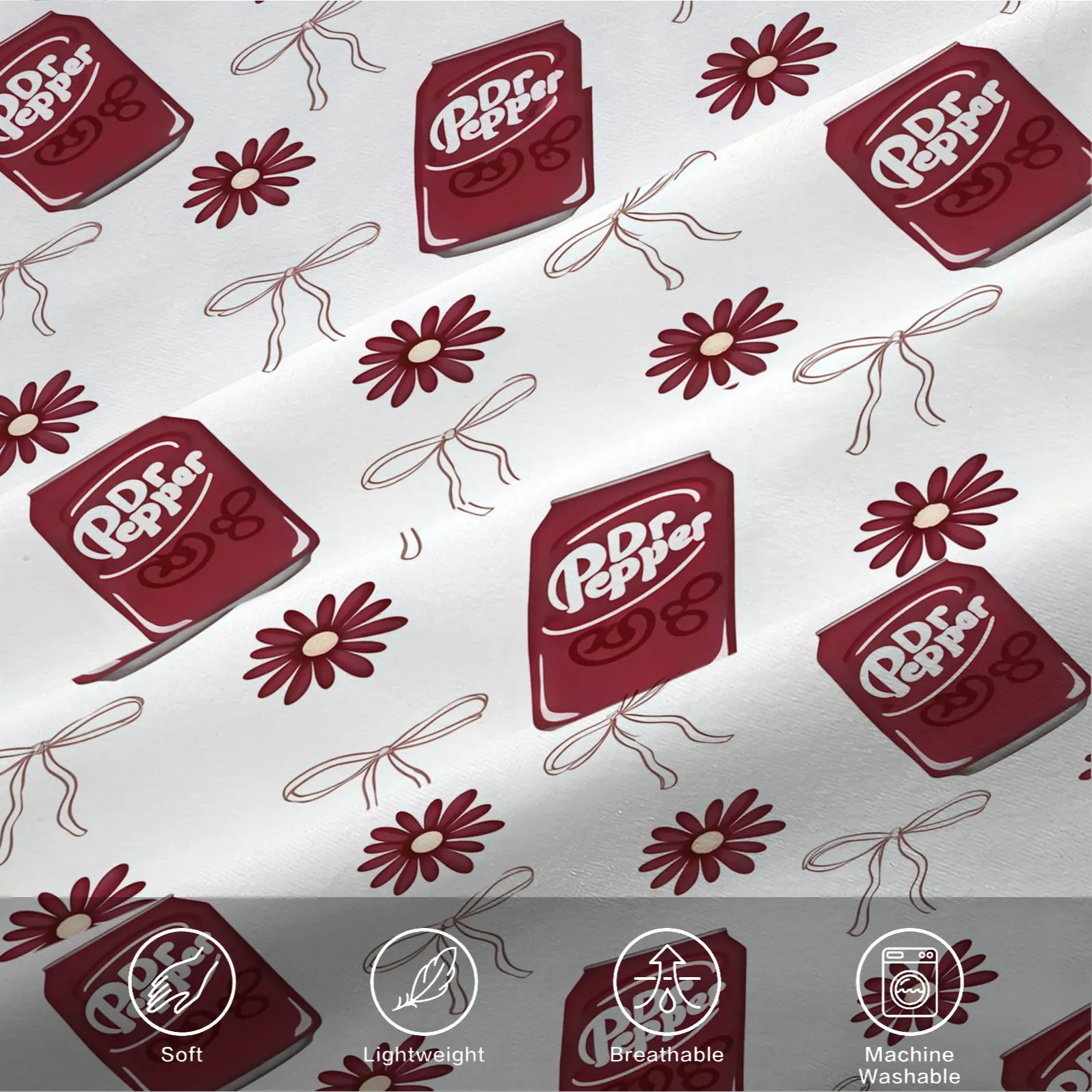 2/3 Piece Dr Pepper Duvet Cover Set, 1 Duvet Cover + 1/2 Pillowcases (NO FILLING INCLUDED), Retro Soda Drink Themed Bedding, Cute Floral Bedroom Decor for Soda Lovers, Ideal Gift for Dr Pepper Fans