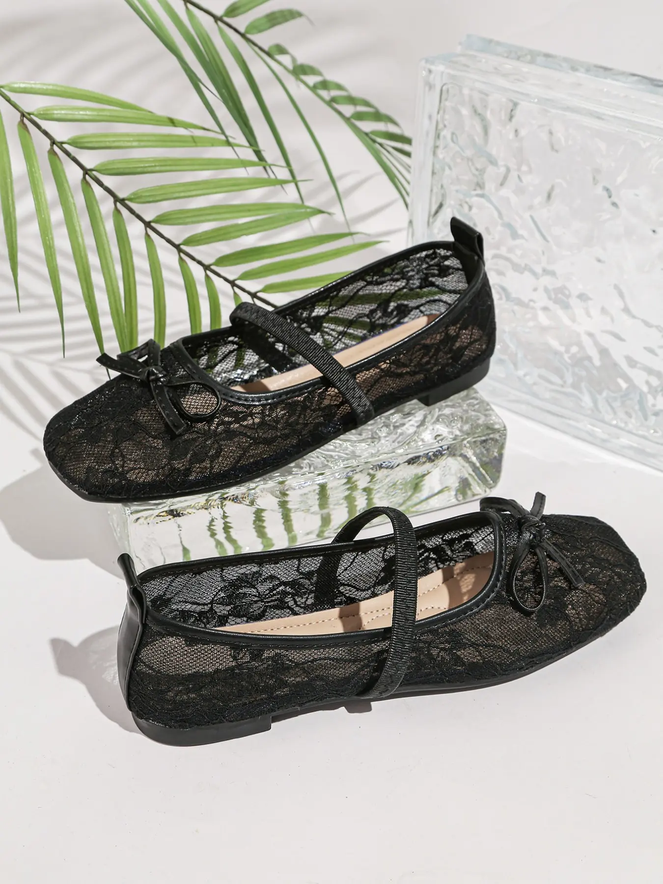 2026 Summer Hollow Out Mesh Square Toe Lace Mary Jane Shoes, Breathable Flat Shoes, Soft Sole Versatile Buckle Single Shoe