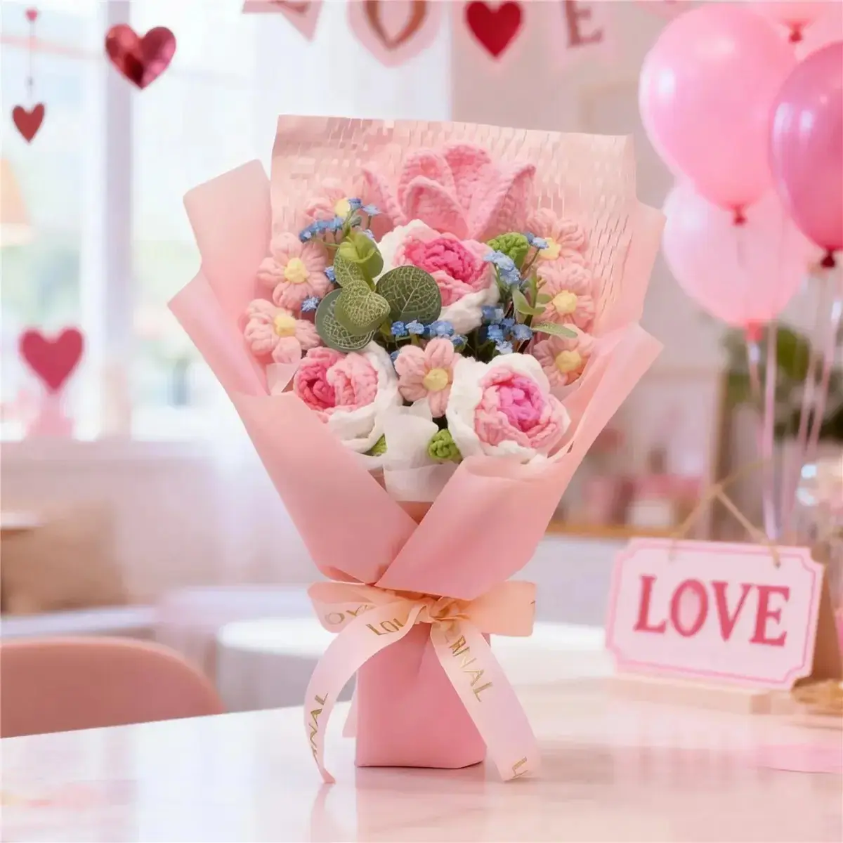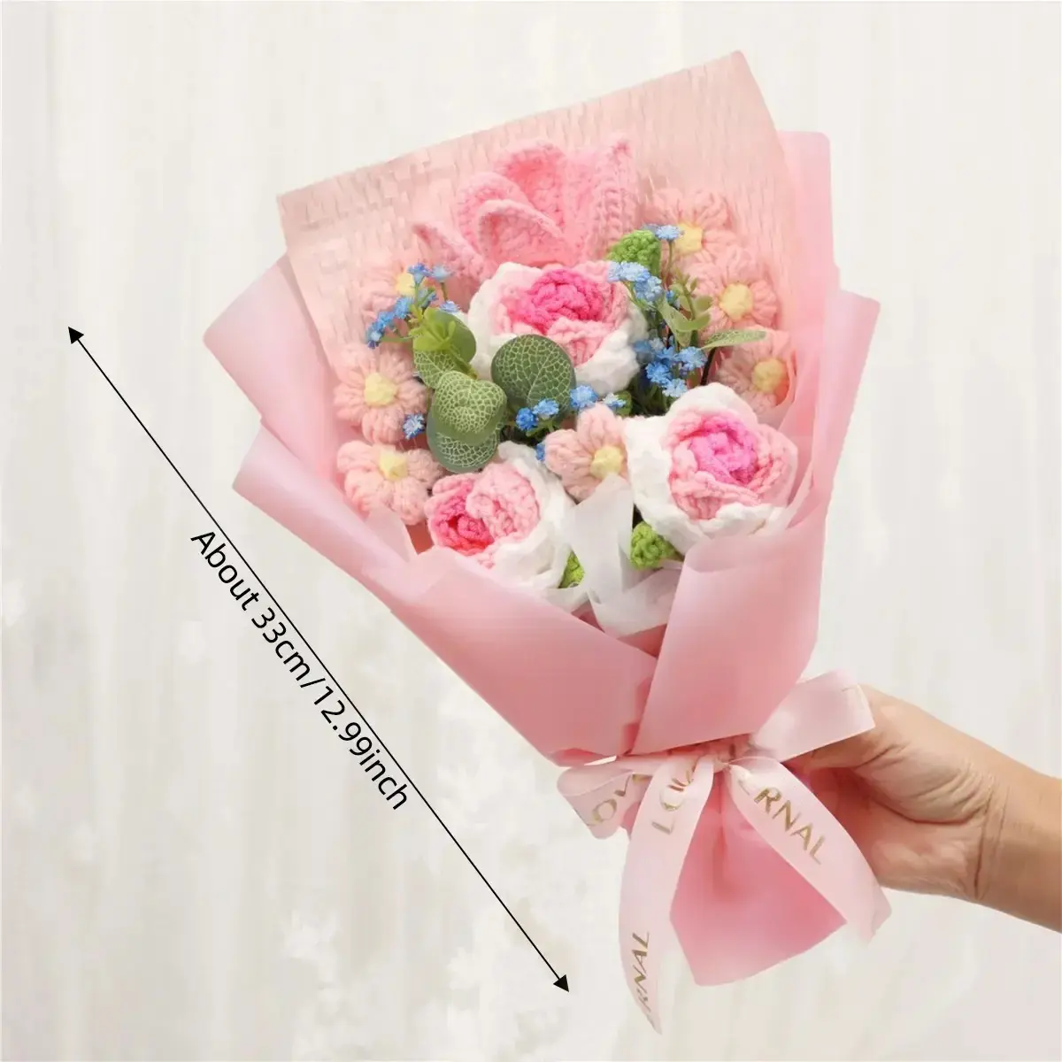 Mother's Day 1pc Handmade Knitted Rose & Lily Bouquet, Yarn Crochet Artificial Floral, Home Decoration, Perfect Gift for Christmas, Valentine's Day, Birthday, Wedding and Anniversary