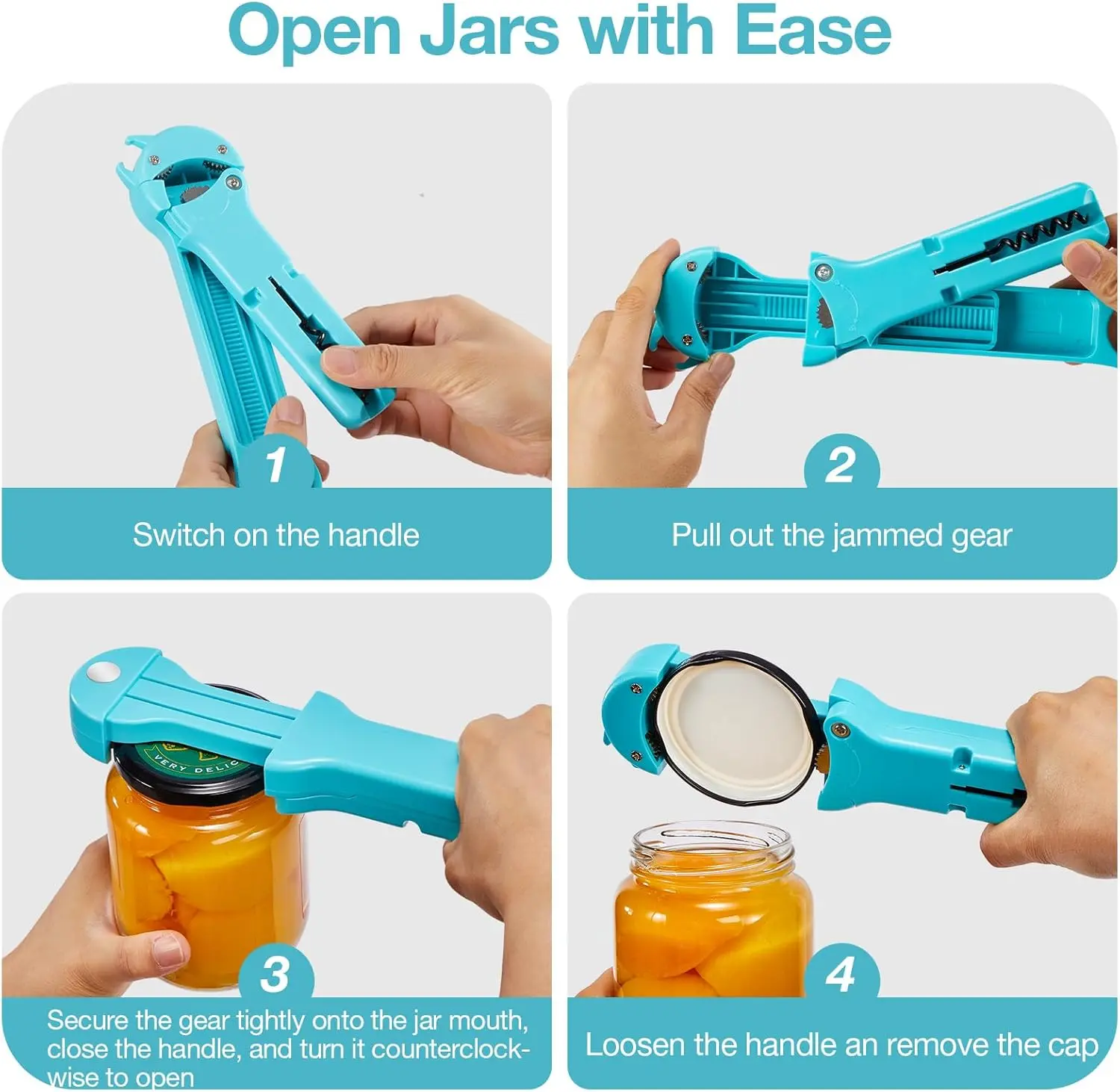 ·【Jar Opener Gripper for Weak Hands】Features a retractable jaw with double-row gears that securely grip lids from 1 to 3.8 inches in diameter. the lever design reduces hand strain, making it suitable as a jar opener for weak hands or users with limited grip strength.
