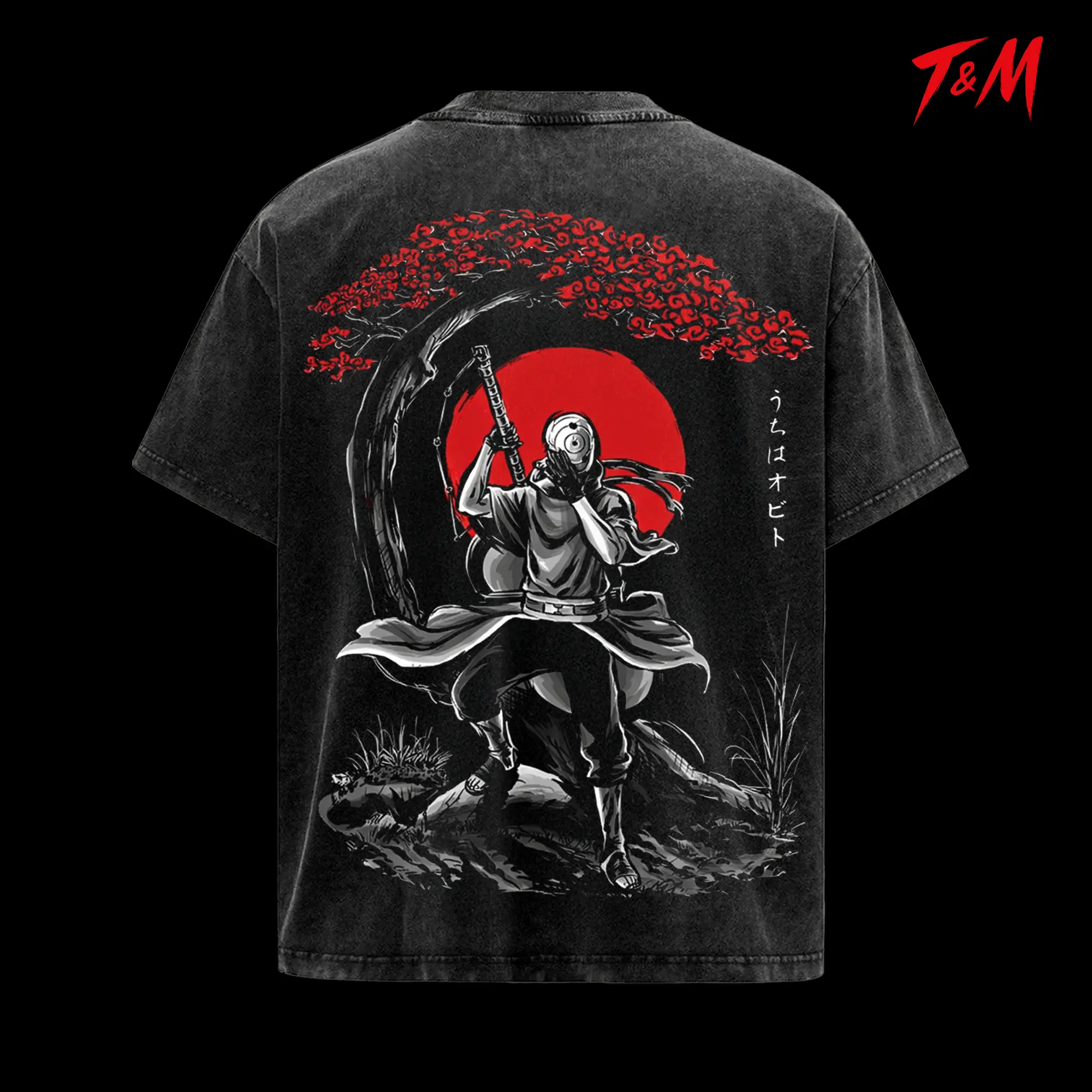 Obito Uchiha - Tobi Akatsuki Vintage Wash Tee, Japanese Sakura Anime Streetwear Shirt - Premium Heavyweight Oversized Graphic T-Shirt, Naruto Gift for him
