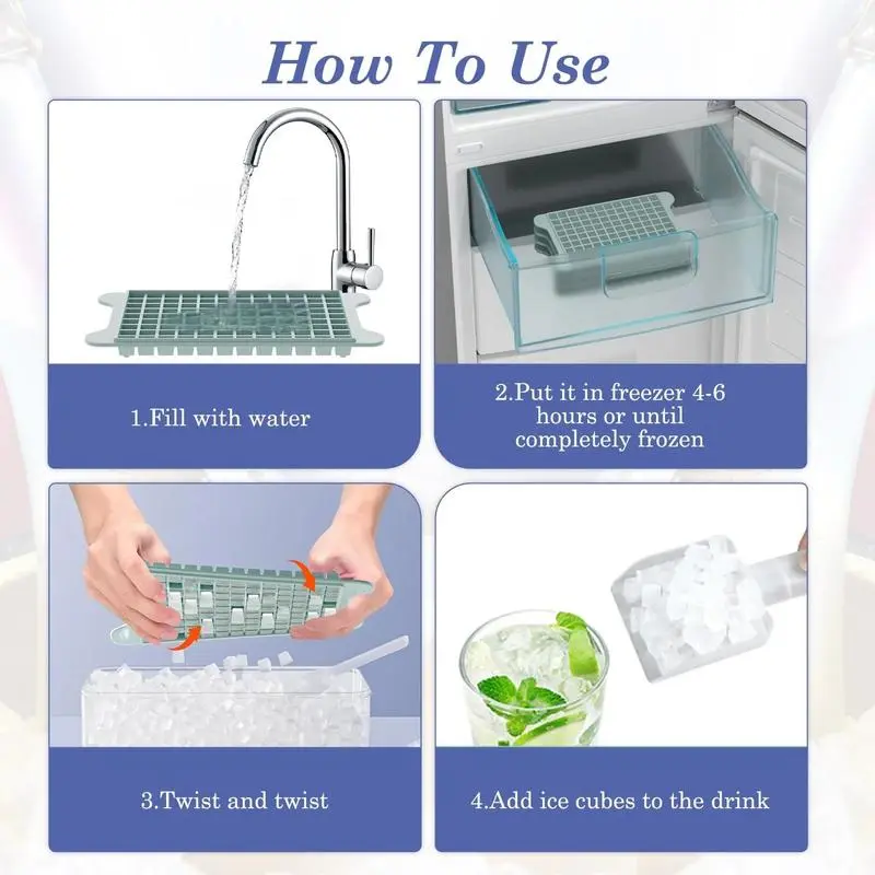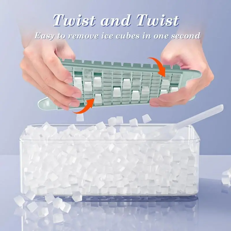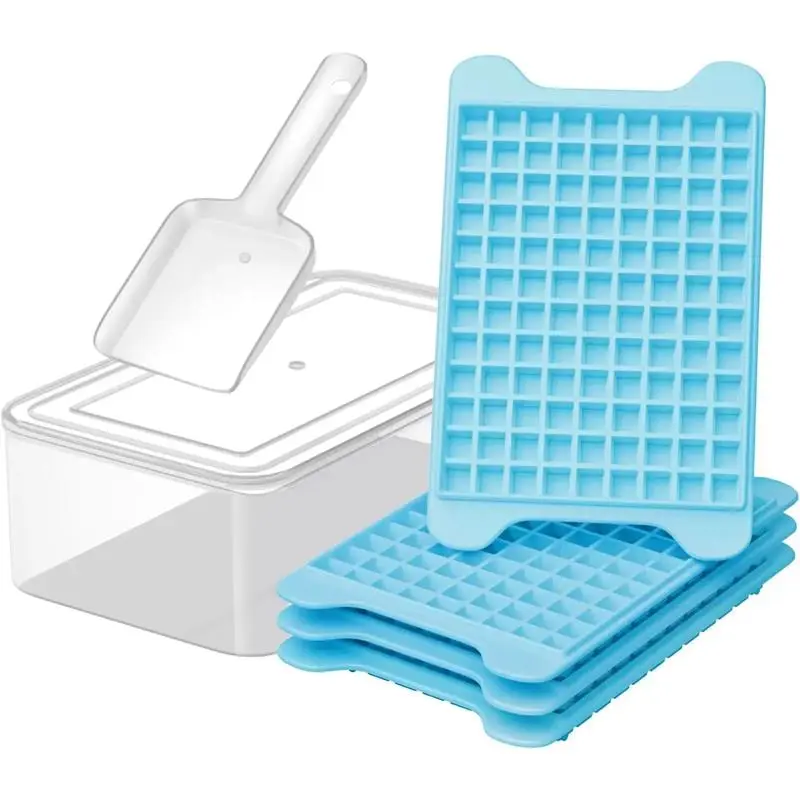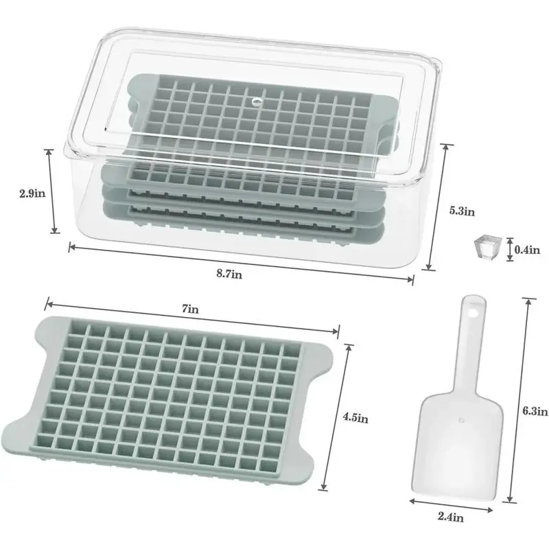 Mini Ice Cube Tray for Freezer, Nugget Ice Tray with Storage Bin, Makes 4×108 PCS Small Ice Cubes, Easy Release Crushed Ice Maker Tray for Drinks & Cocktails