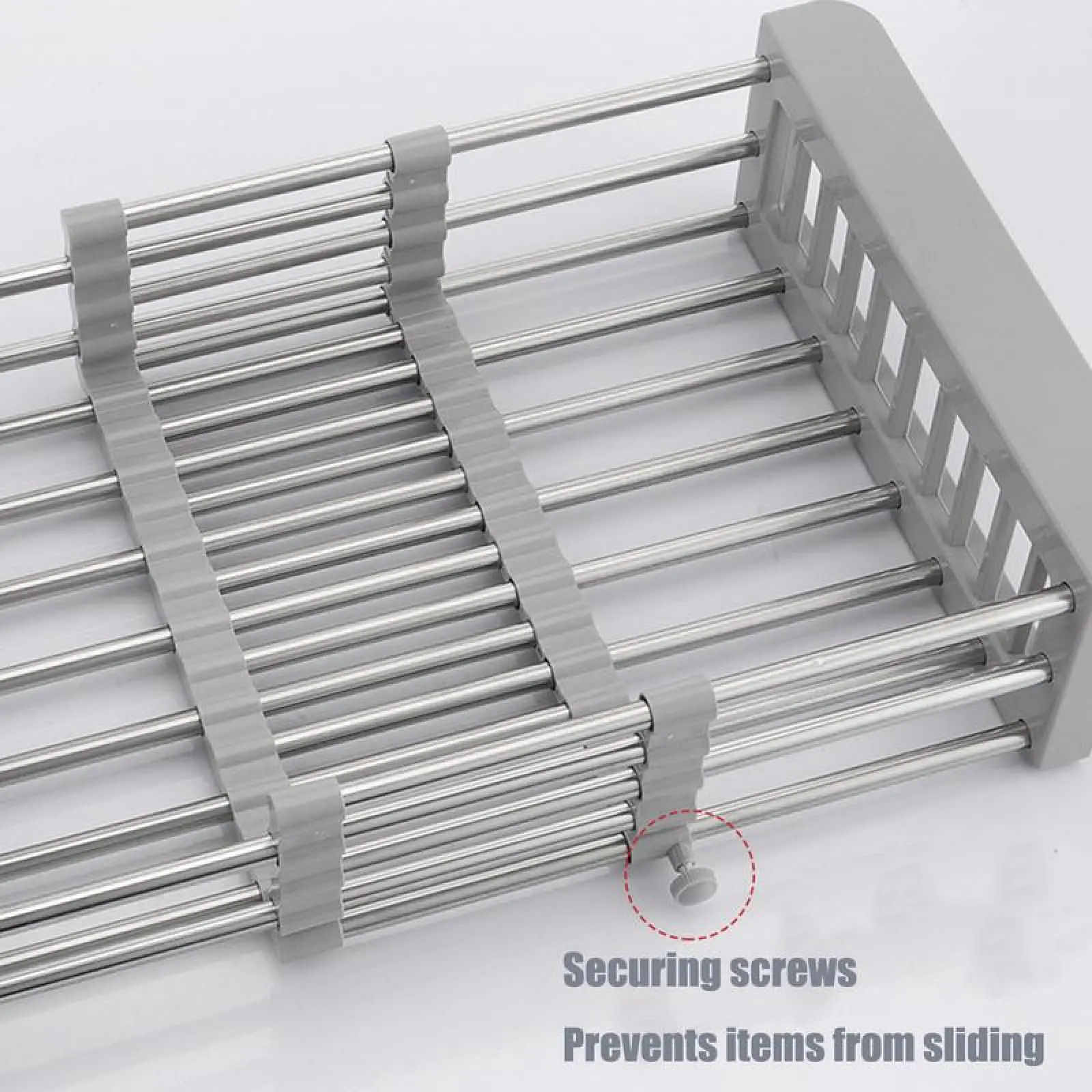 Key Features:·ADJUSTABLE SINK DRYING RACKThis expandable rack fits on the counter or in the sink, with a removable design for easy portability.Its drainage system directs water straight into the sink, preventing mess.The industrial-style design suits modern kitchens.