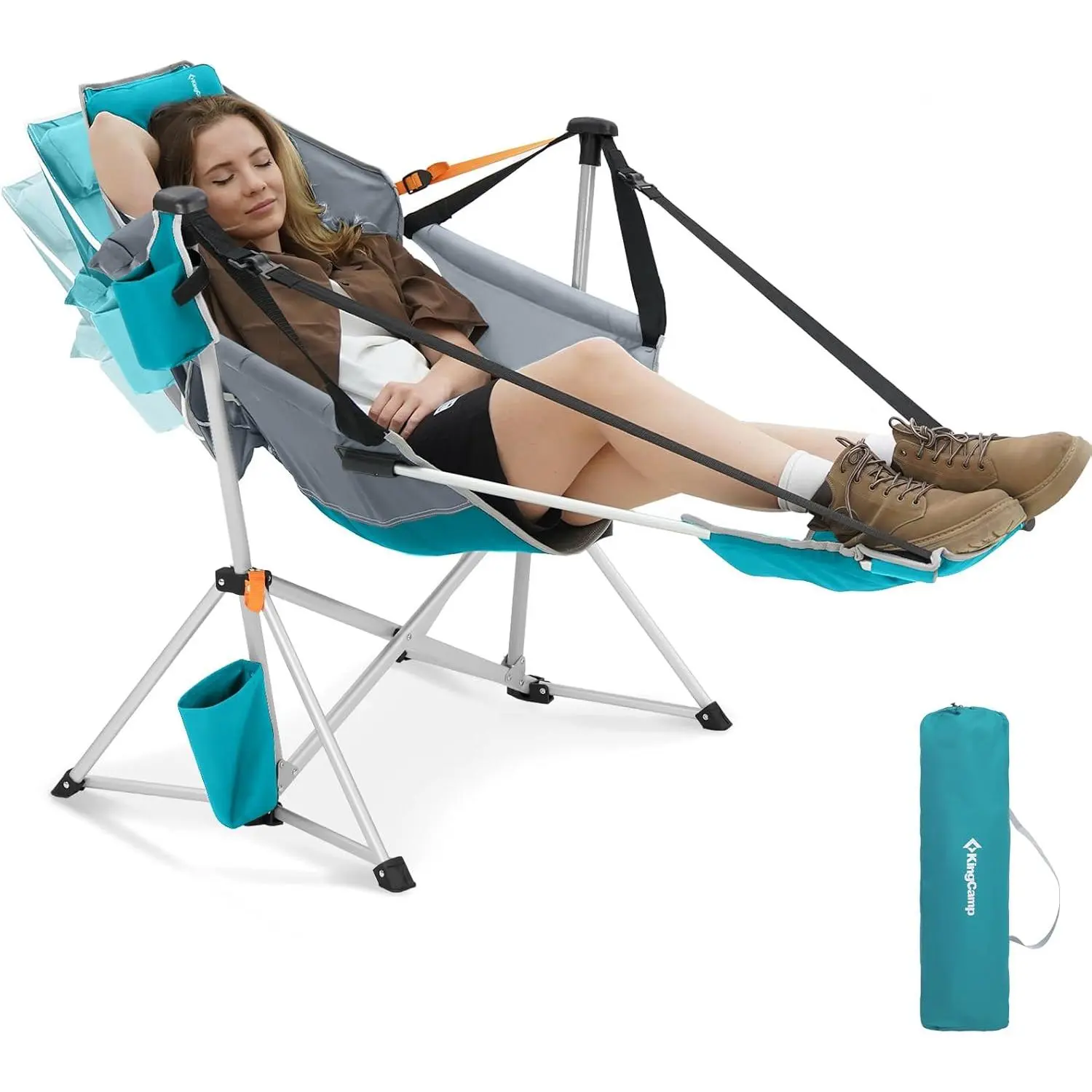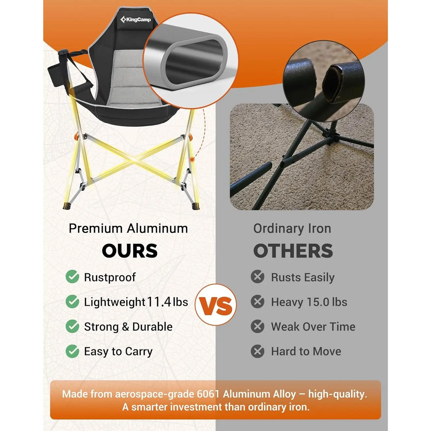 KingCamp Hammock Chair with Footrest – Heavy Duty Swinging Rocking Camping Chairs for Adults up to 400lbs, Folding Portable Oversized Rocker with Cup Holder & Pillow for Outdoor Beach Lawn RV Sports