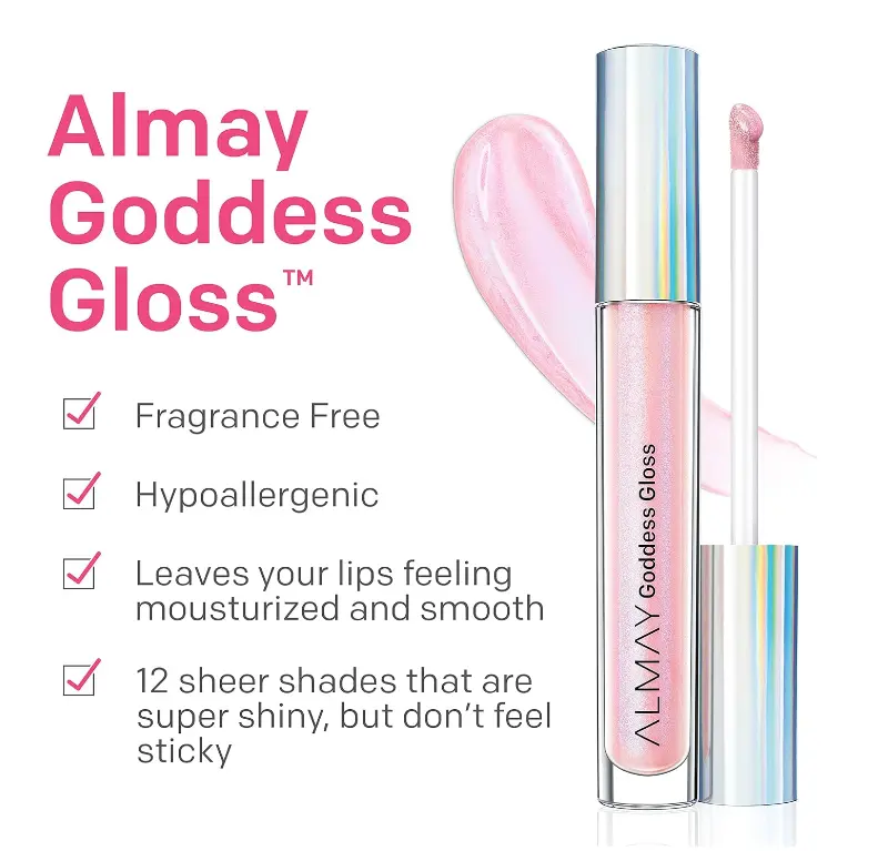 Almay Lip Gloss, Non-Sticky Lip Makeup, Holographic Glitter Finish, Hypoallergenic, 200 Angelic, 0.9 Oz