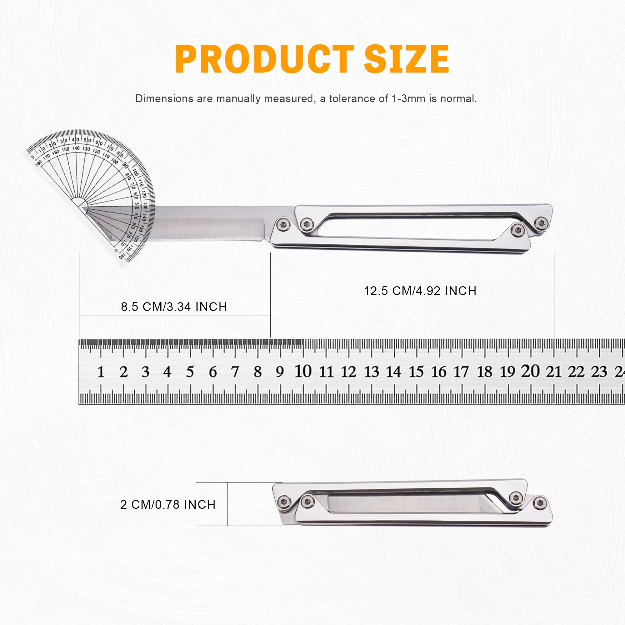 Portable EDC multifunctional tactical outdoor folding knife and pocket knife. Completely made of steel with a leather sheath; outdoor cutting tools designed specifically for climbing and fishing; essential gear for camping and hiking.