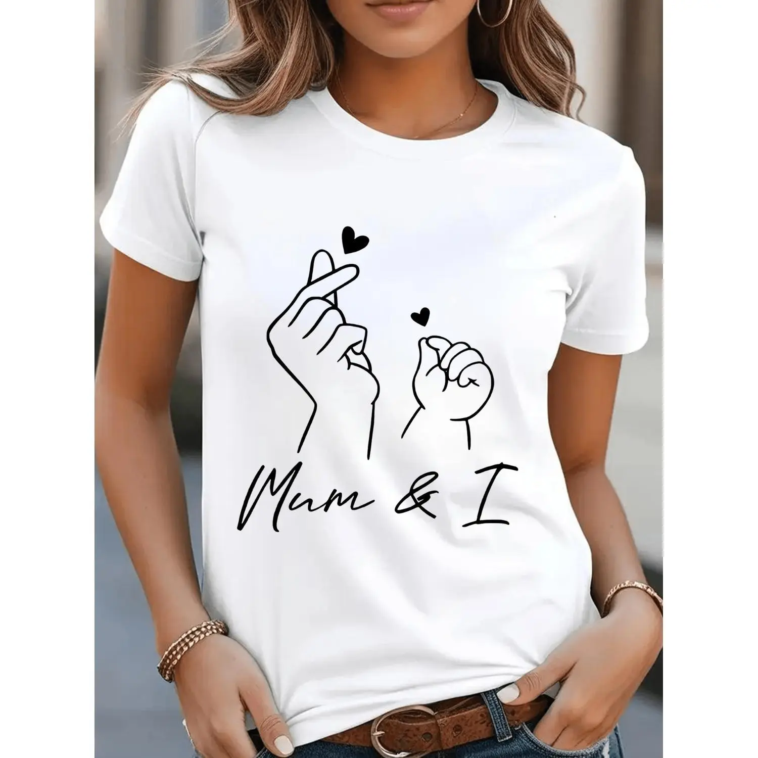 Casual Short Sleeve Breathable Sportswear with Handprint Design Perfect for Women's FashionCasual Short Sleeve Breathable Sportswear with Handprint Design Perfect for Women's Fashion
