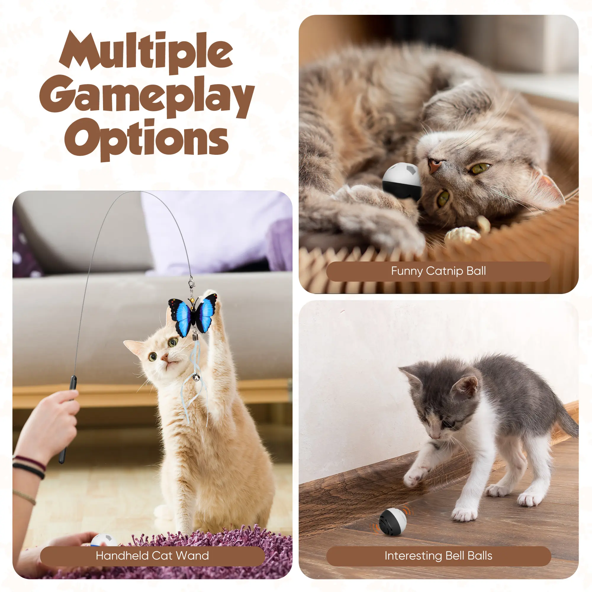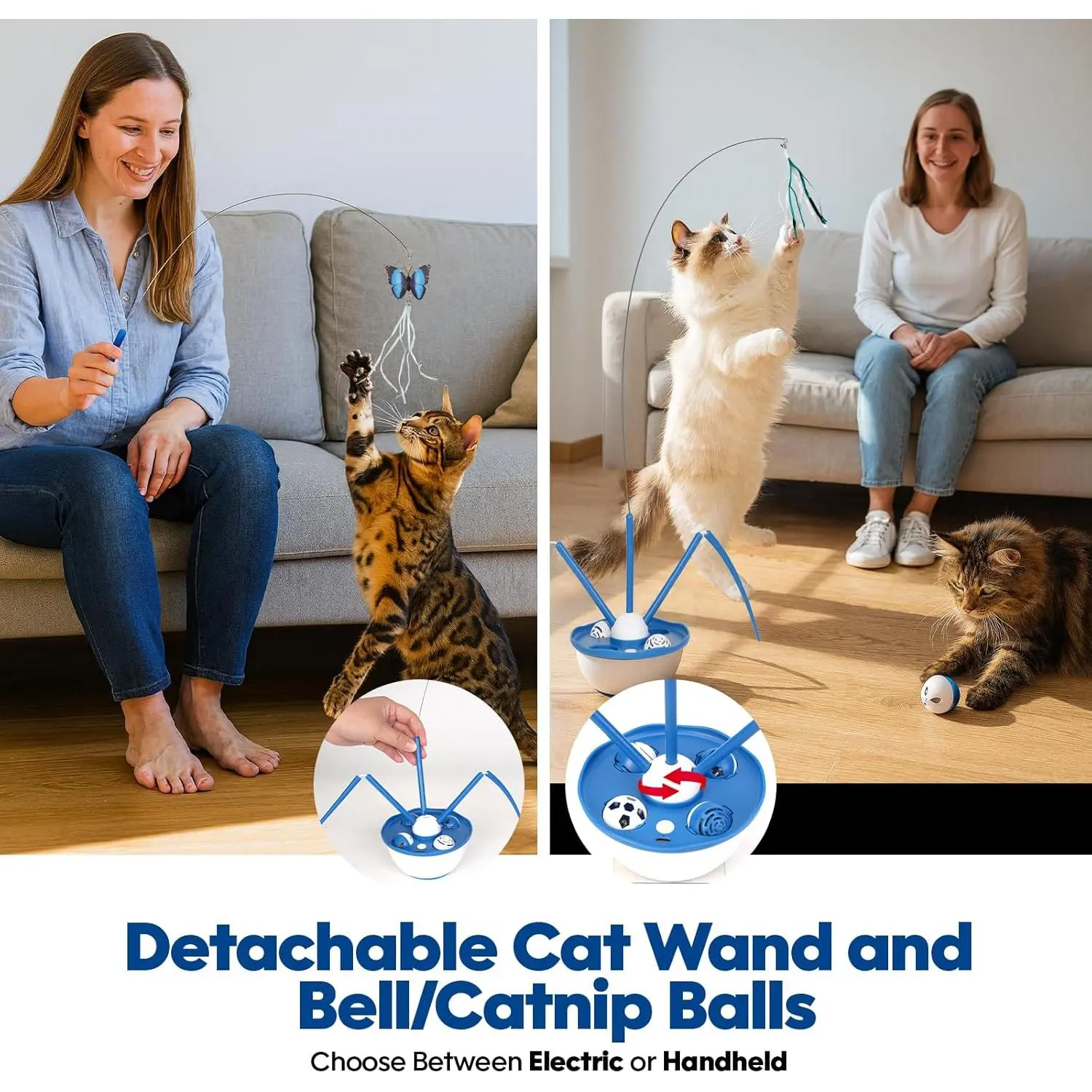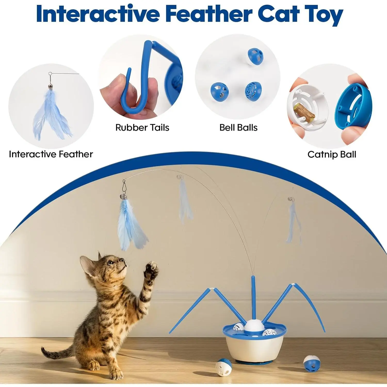 Keep indoor cats engaged with this 7-in-1 automatic cat wand toy.It features detachable attachments, 360° movement, rechargeable use, and a suction cup base for hands-free play.