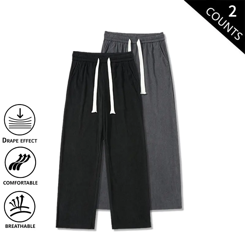 ·2-Pack Corduroy Straight-Leg Casual Men’s Pants: Elevate your casual wardrobe with these stylish pants. Perfect for everyday wear, they offer a relaxed yet athletic look. The straight-leg design ensures a comfortable fit, while the elastic waist provides ease and flexibility. Ideal for those who prefer a loose fit.