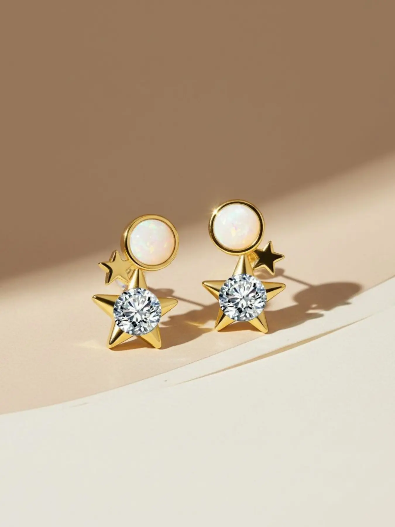 Double Glow Star Ring · Gold Sequence | Original Niche Star Opal Earrings, 925 Sterling Silver Needle Luxury Studs, Daily Essential Lucky Charm Accessory, Perfect for Valentine’s & Birthday Gifts