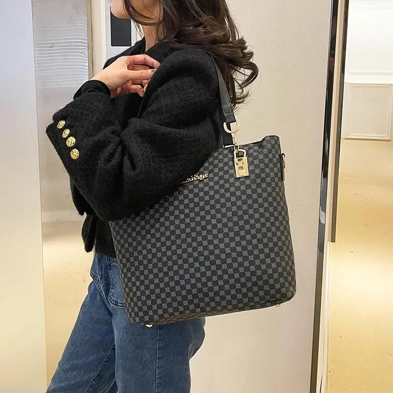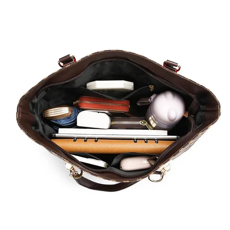This new women's bag set combines European and American fashion. It includes a six-piece set, perfect for versatile styling. The mother bag is designed for hand-held use, offering convenience. It also serves as a single shoulder or crossbody bag, suitable for various occasions.