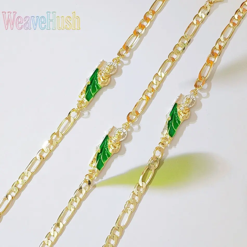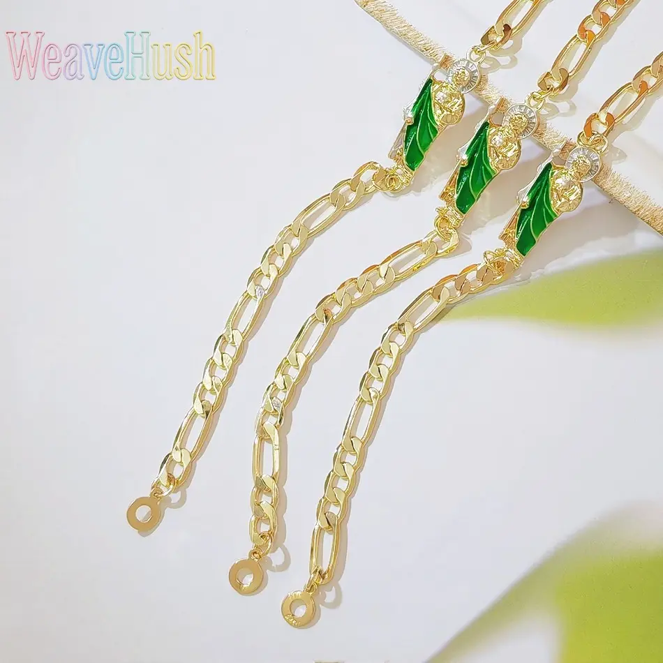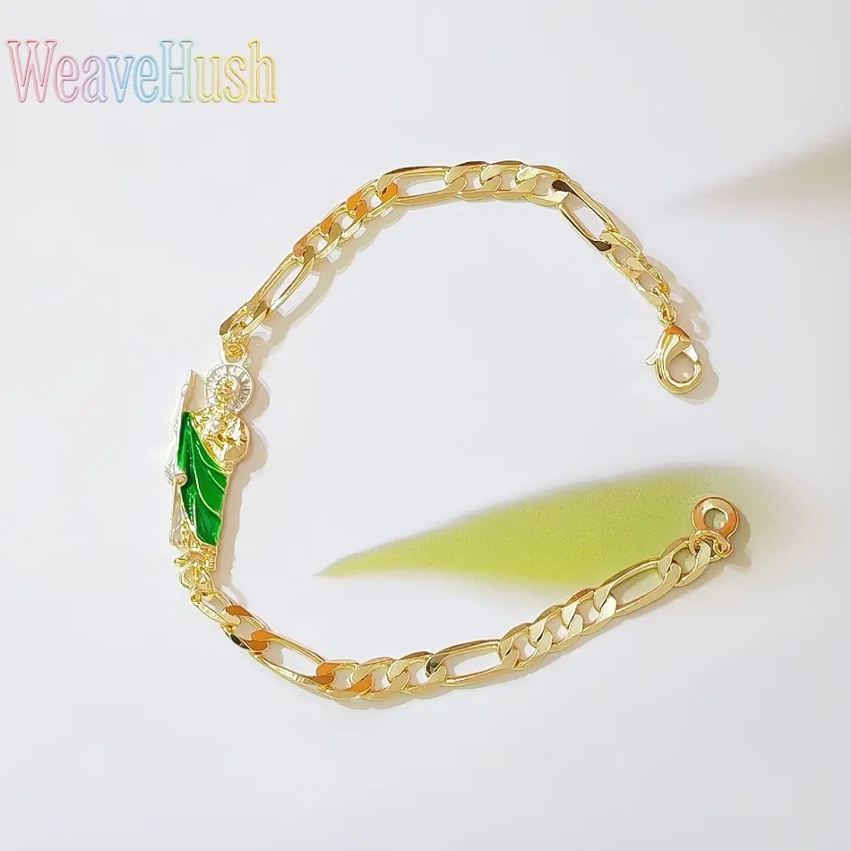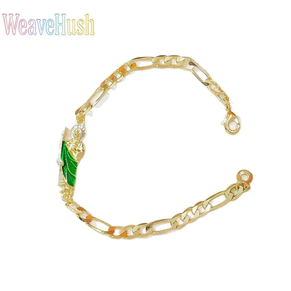 New Vintage British Style Virgin Mary Bracelet, 18K Gold Plated Green Saint Jude Pendant Bracelet, Religious Catholic Faith Jewelry for Women, Adjustable Retro Design for Daily Wear, Church, Prayer & Meaningful Religious Gifting