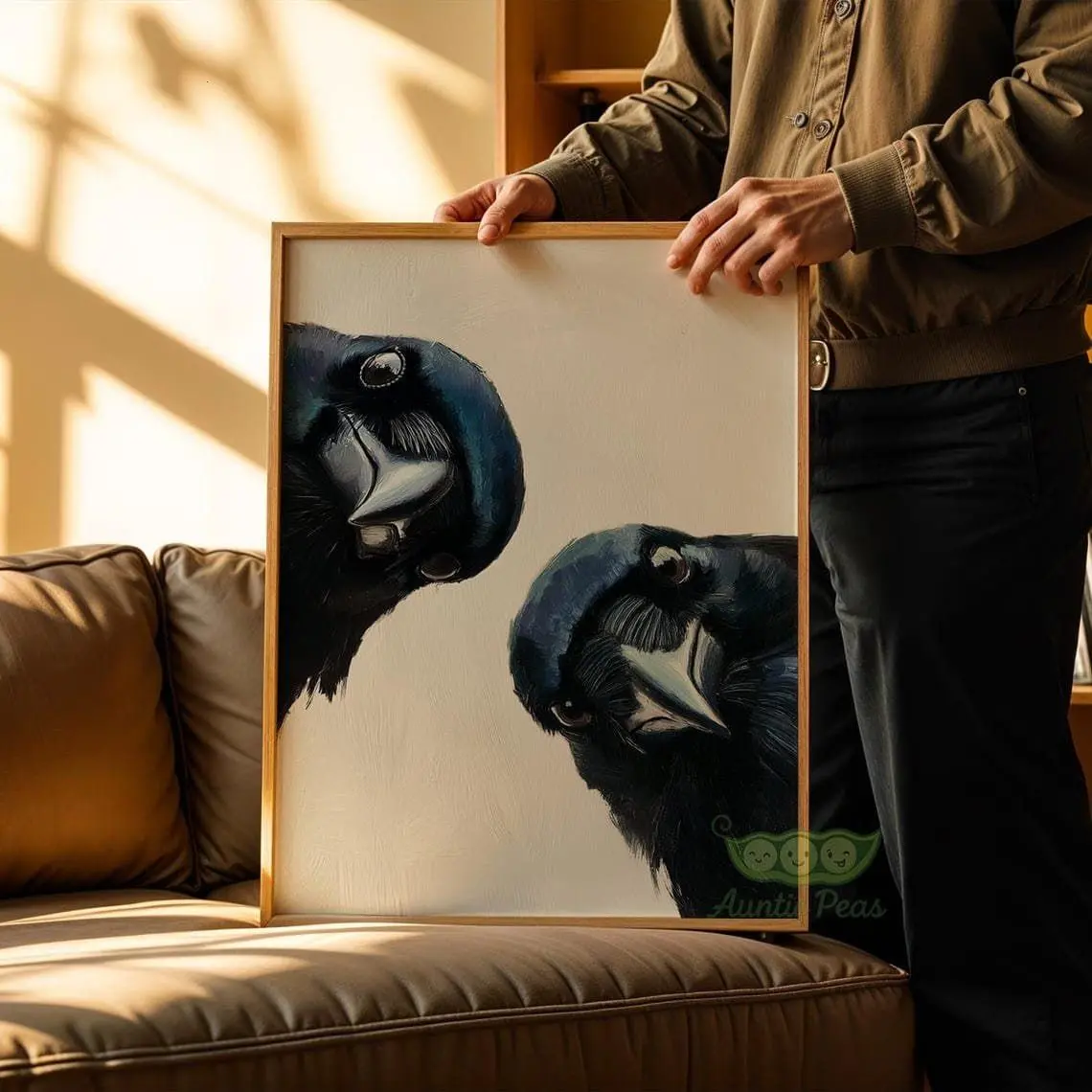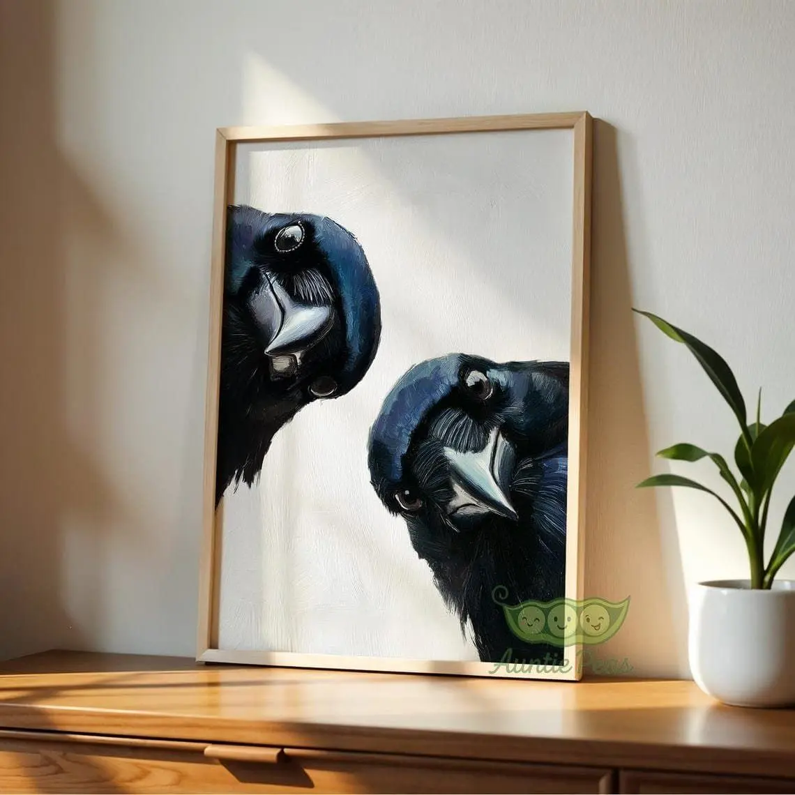 [Sale off up to 50%] [Free ship] [No Frame] Whimsical Crows Wall Art, Curious Bird Painting, Raven Portrait Art Print, Moody Animal Artwork, Modern Rustic Home Decor, Bird Lover Gift
