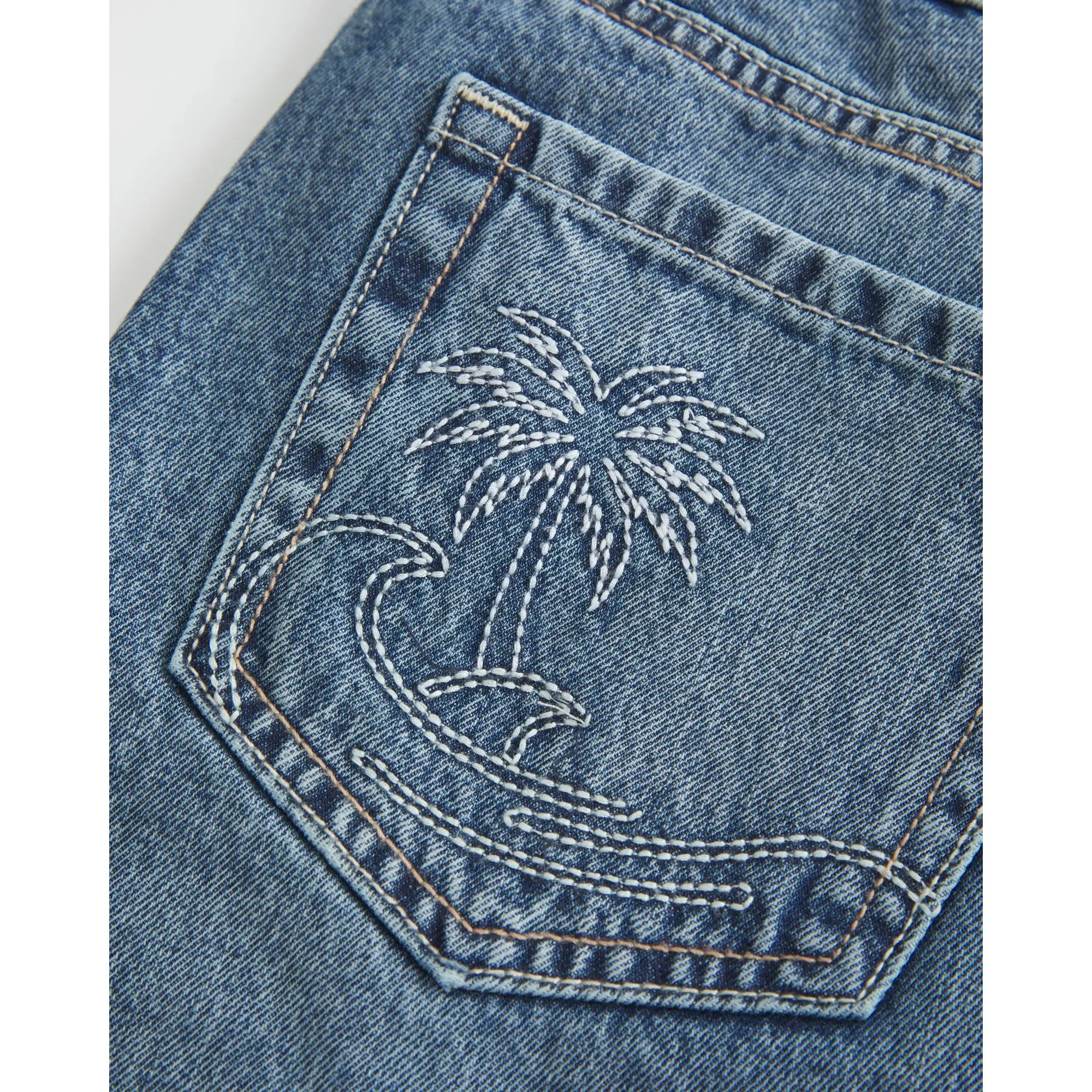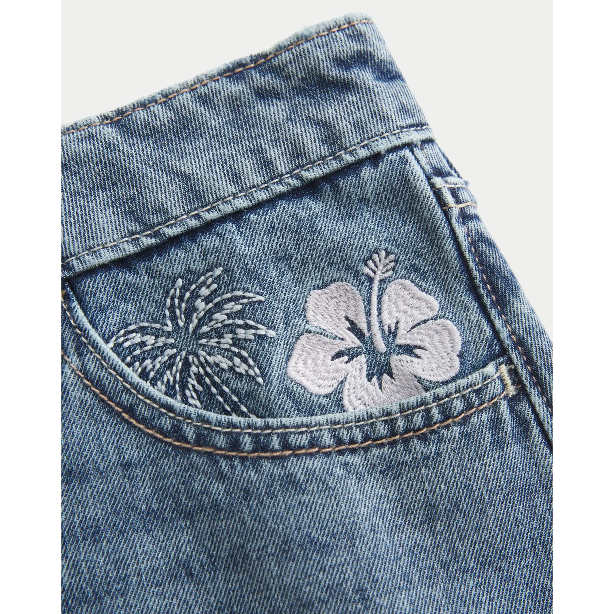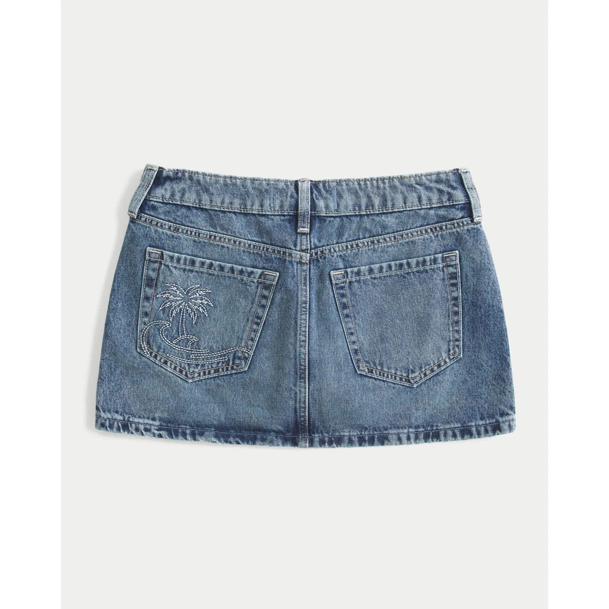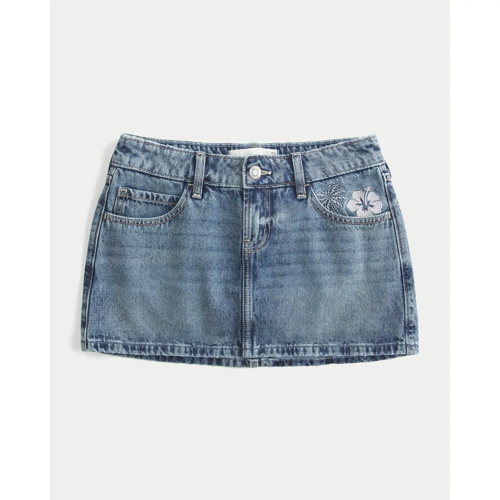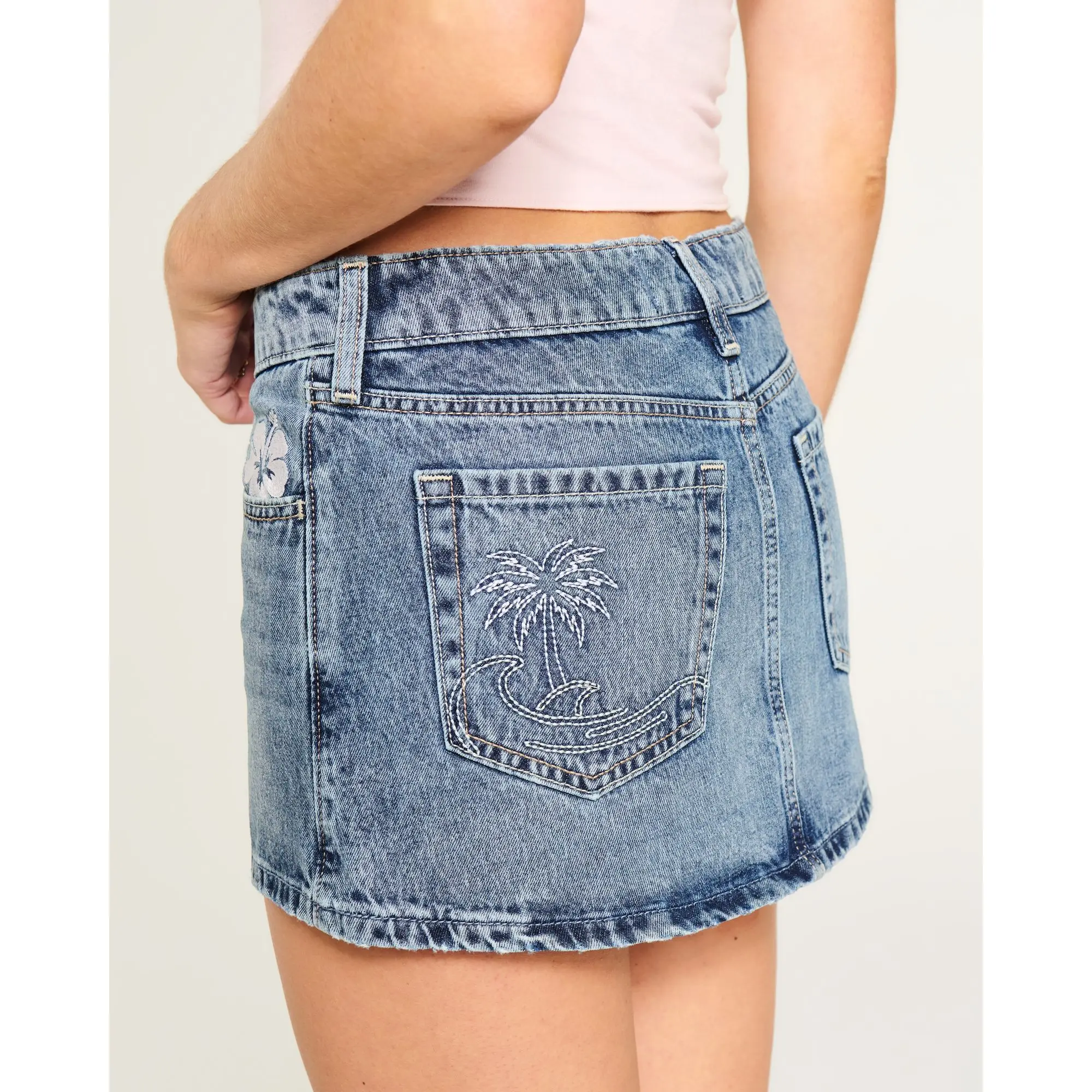 Hollister Low-Rise Medium Wash Embroidered Denim Mini Skort