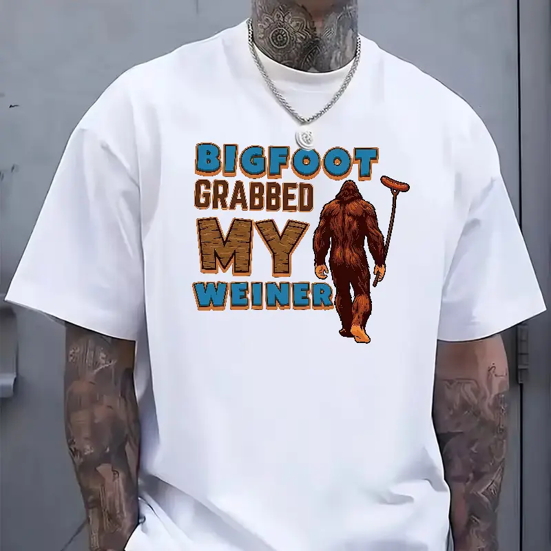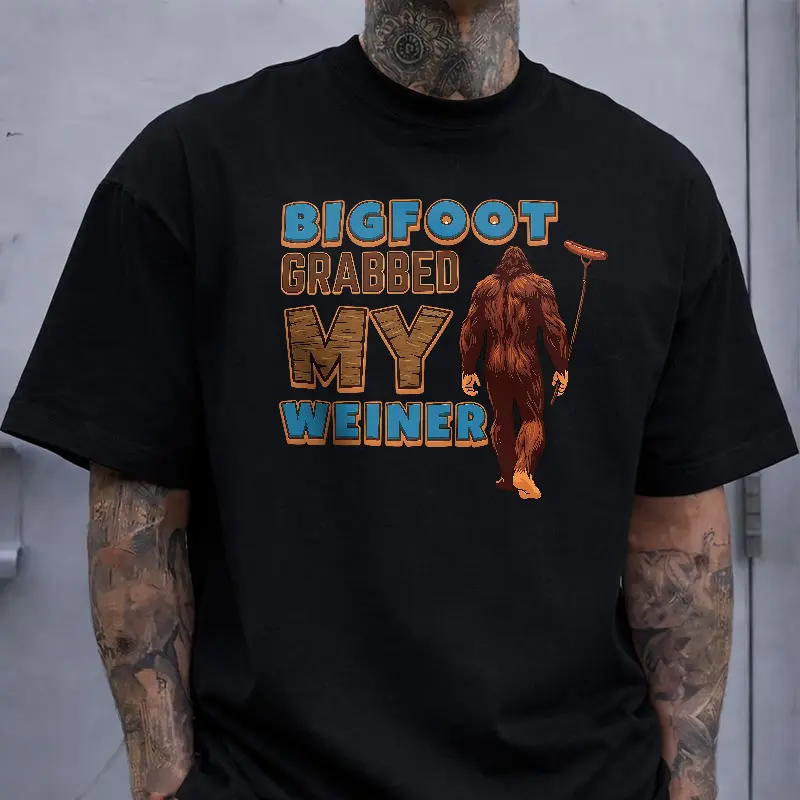Bigfoot Grabbed My Weiner' Funny Print T-shirt American Humor Style Casual Top