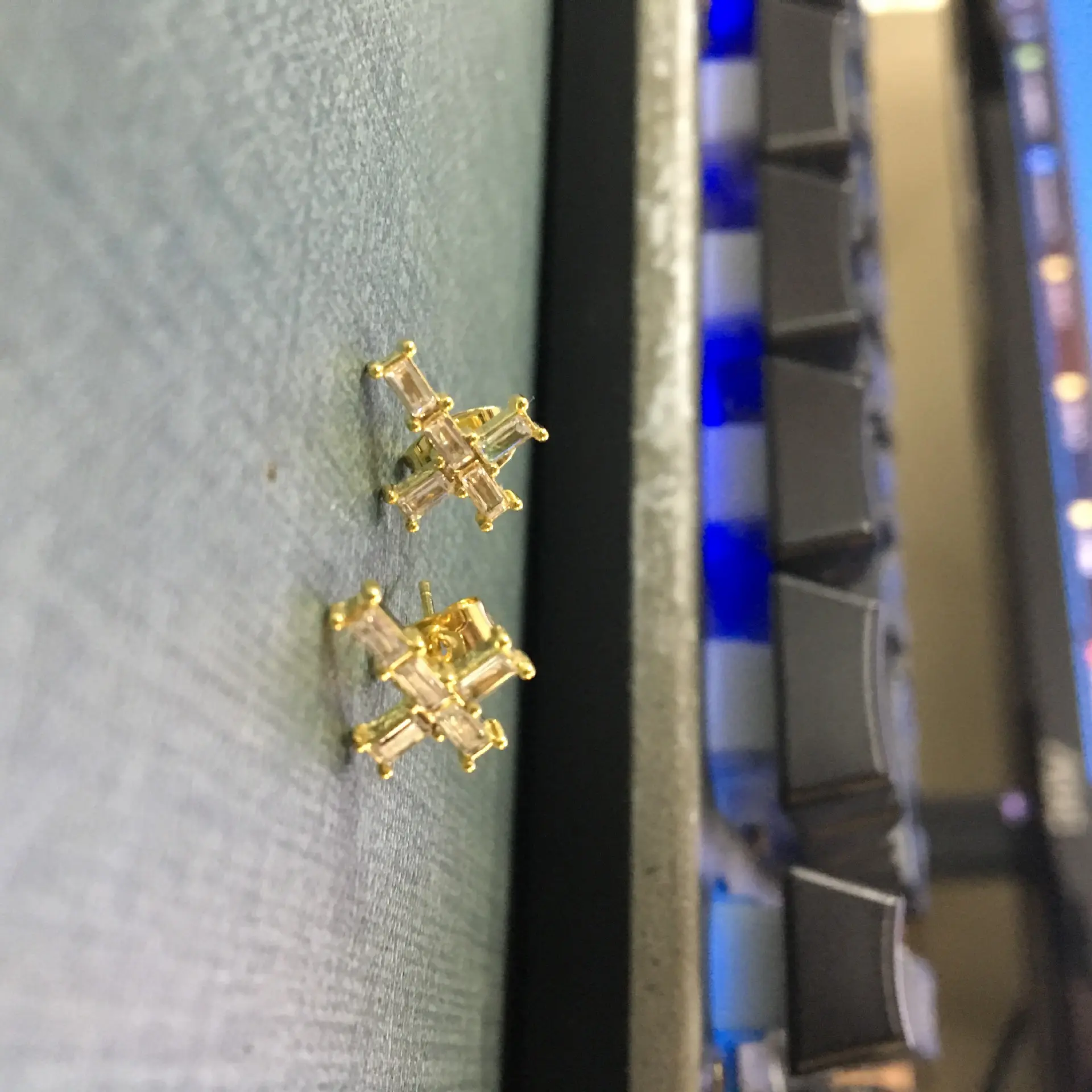 Vacuum Plated Copper with 5A+ Sri Lanka Zircon Step-Cut Cross Stud Earrings (Unisex) With Earring Miami Italy Mexico & Micro Inspired for Women & Men Luxury Jewelry,Daily Wear,Casual Fashion,Gift,Chicano,Classic,Hip Hop,Simple