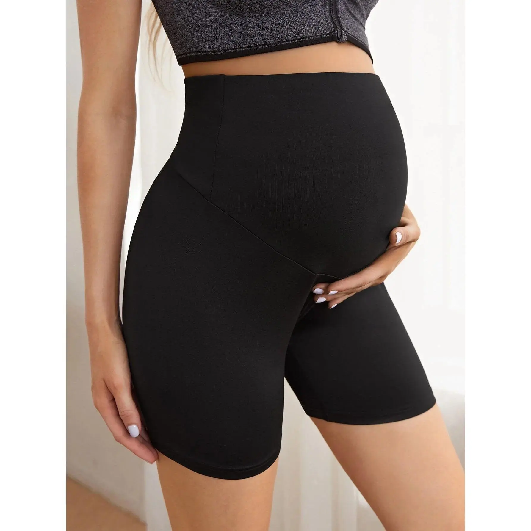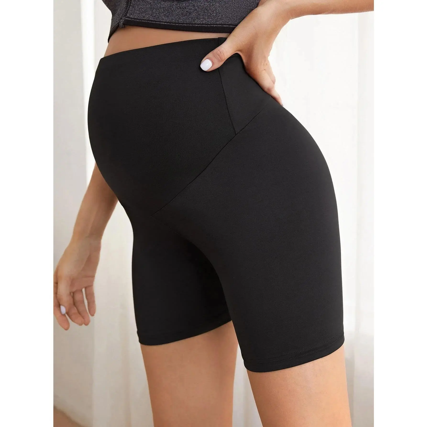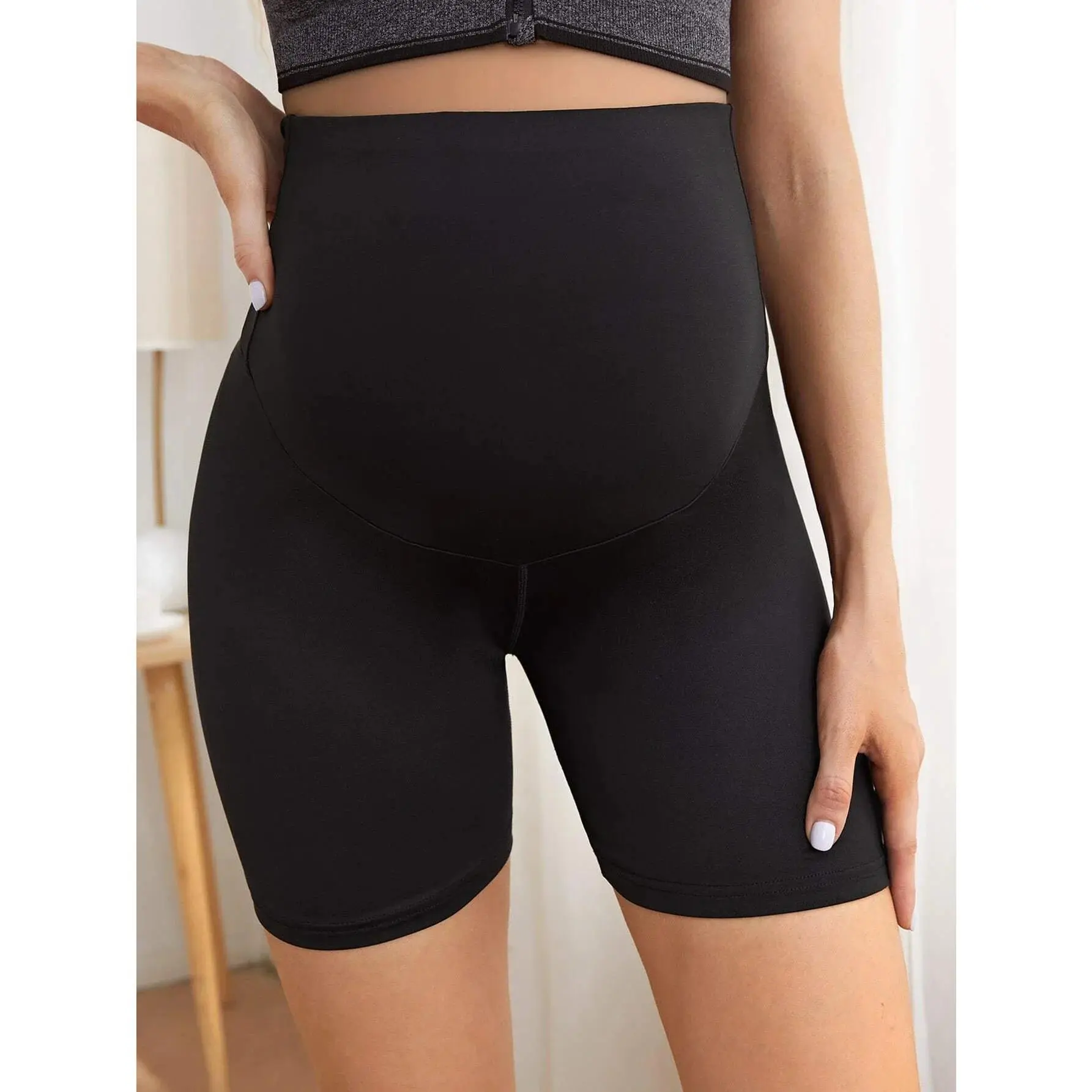 Black Summer Maternity Leggings with Abdominal Support, Casual Stretchy Versatile Sports Maternity Shorts, Three-Point Length