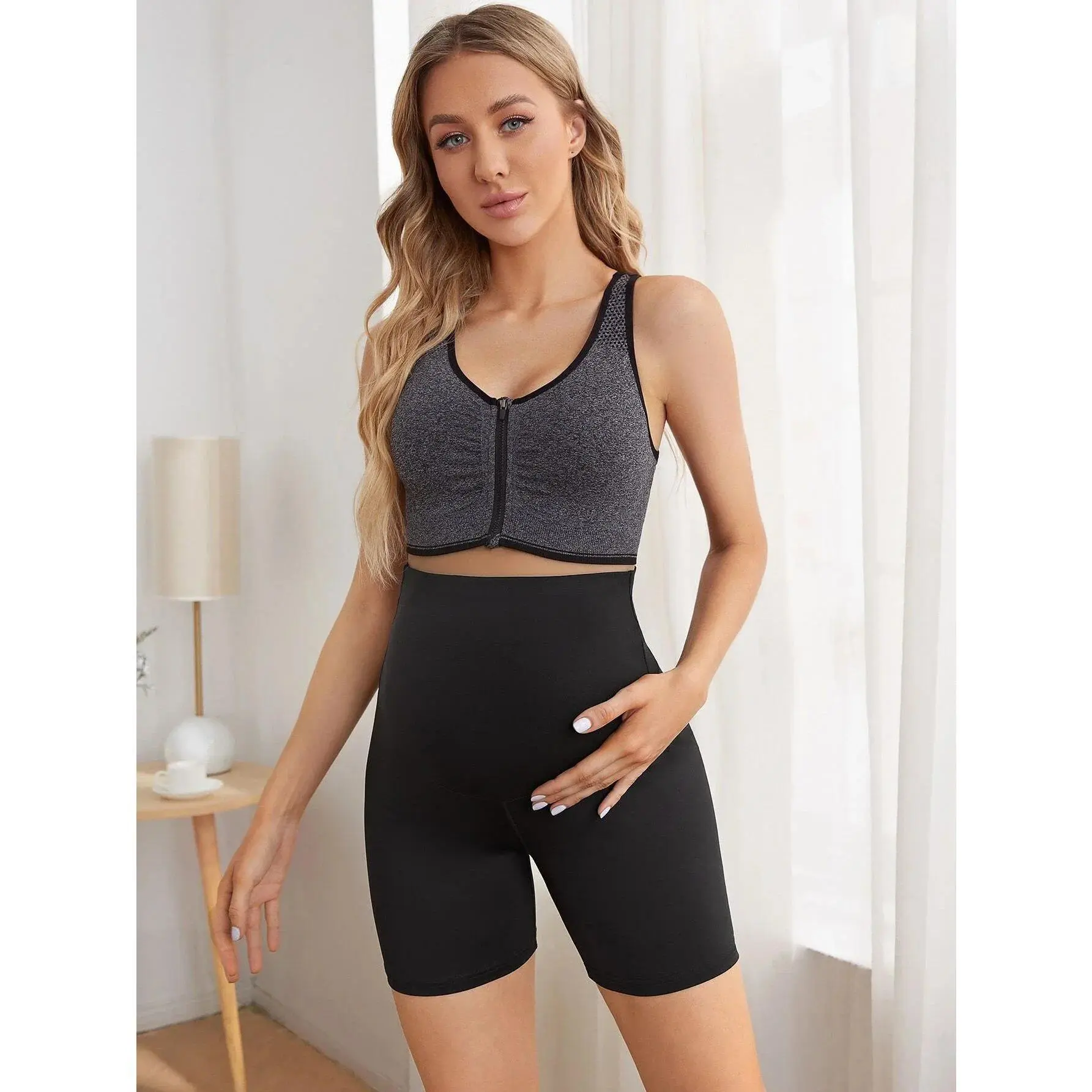 The three-point length of these leggings offers a balanced fit. It covers the necessary areas while allowing for ease of movement. This design is perfect for those who prefer a modest yet stylish look. The leggings are a practical choice for maternity wear, combining functionality with fashion. Stay comfortable and supported in these versatile shorts.