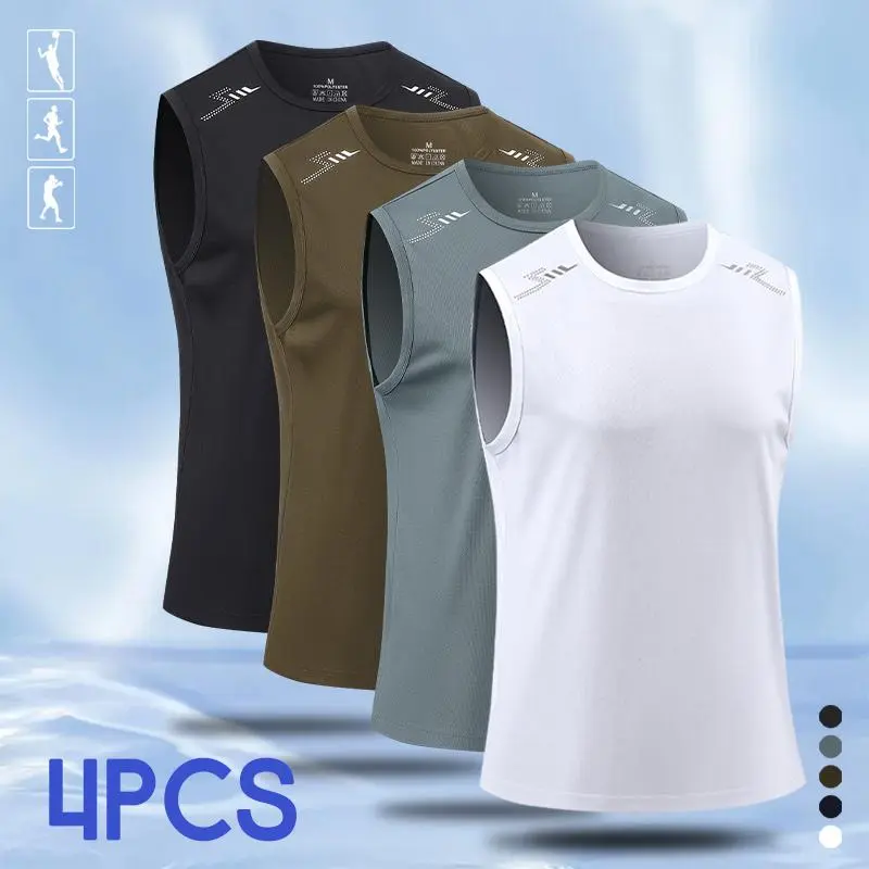 4PCS, Men's Graphic Athletic Tank Tops, Moisture Wicking Quick-Drying Gym Training Vest, Summer Sports Activewear Performance Muscle Shirts