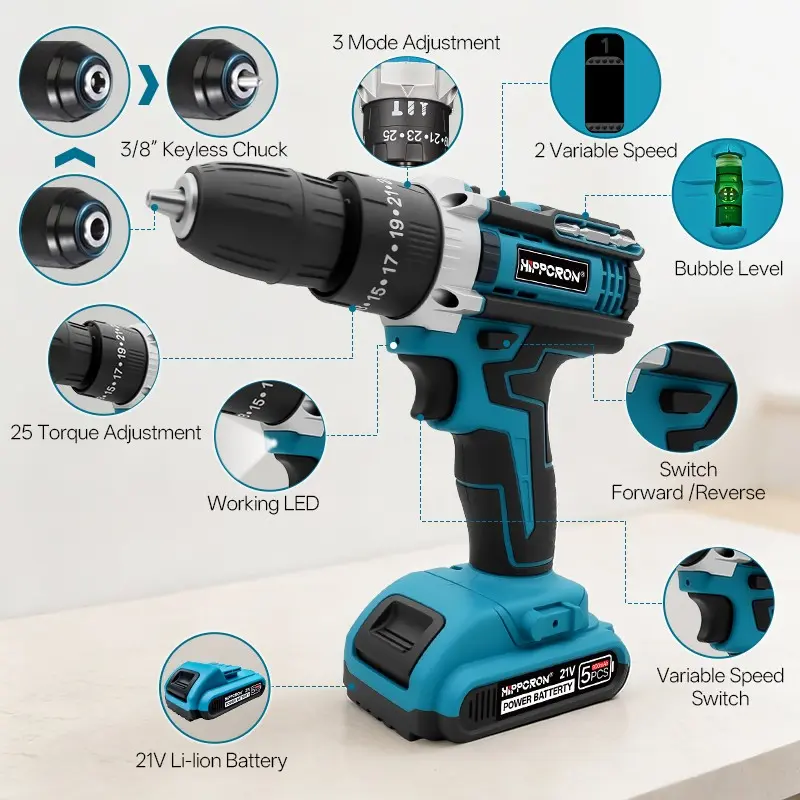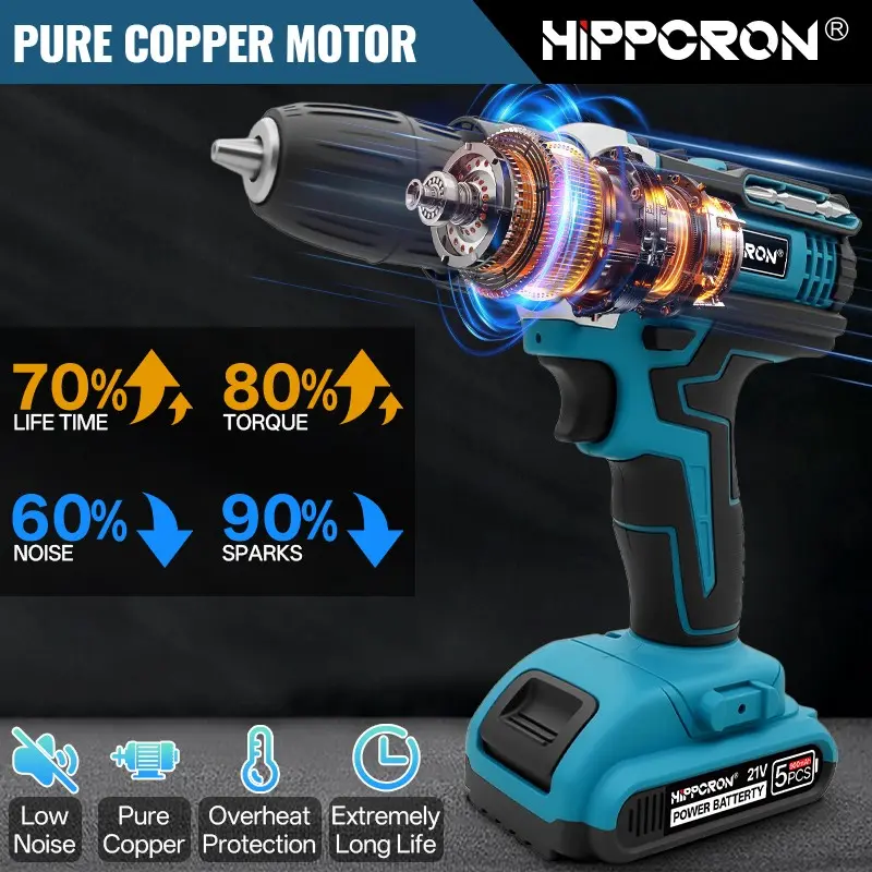 HIPPCRON 21V Cordless Impact Drill - Professional Grade Power Tool Solution