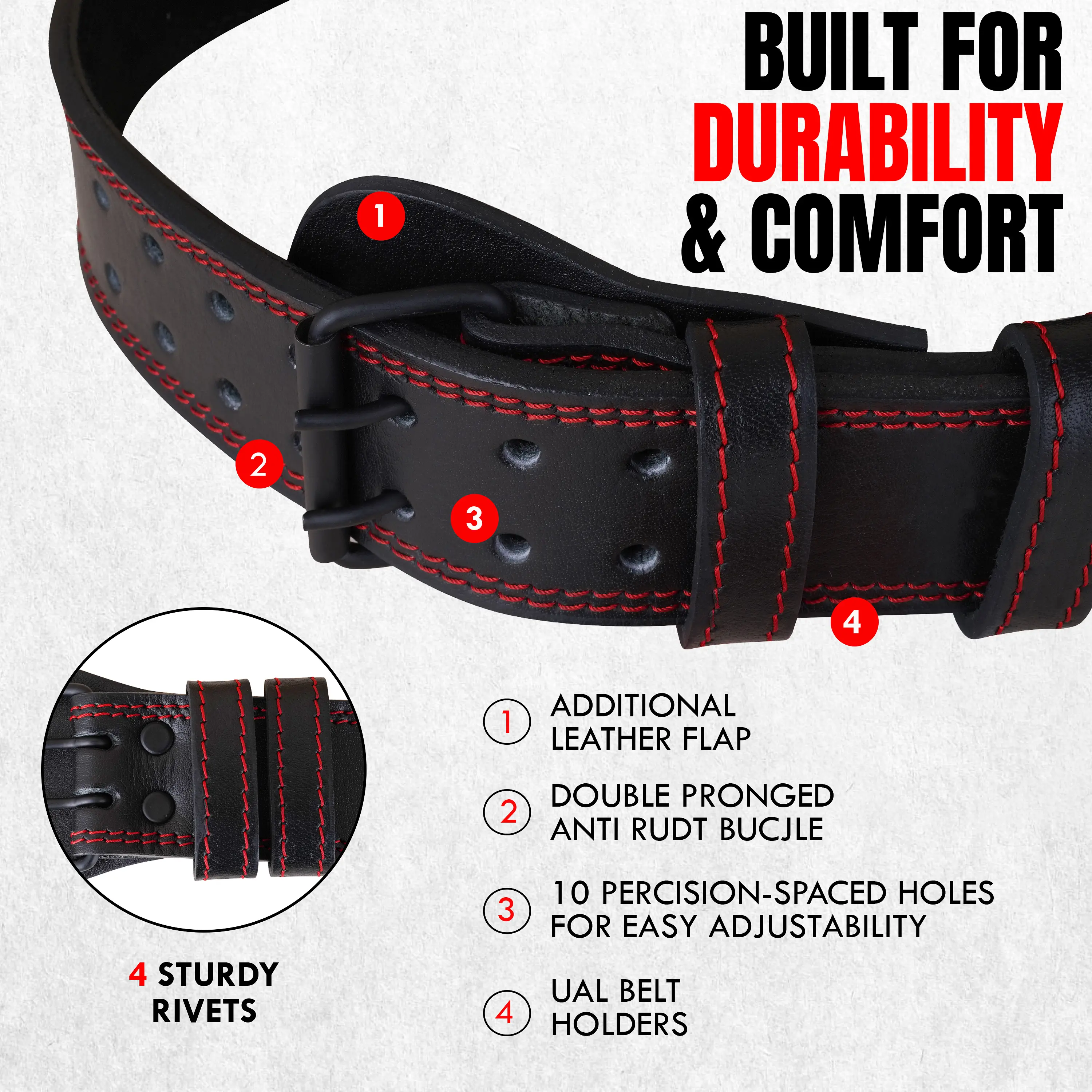·Heavy Duty Steel Buckle – Strong double prong buckle for secure and tight fit