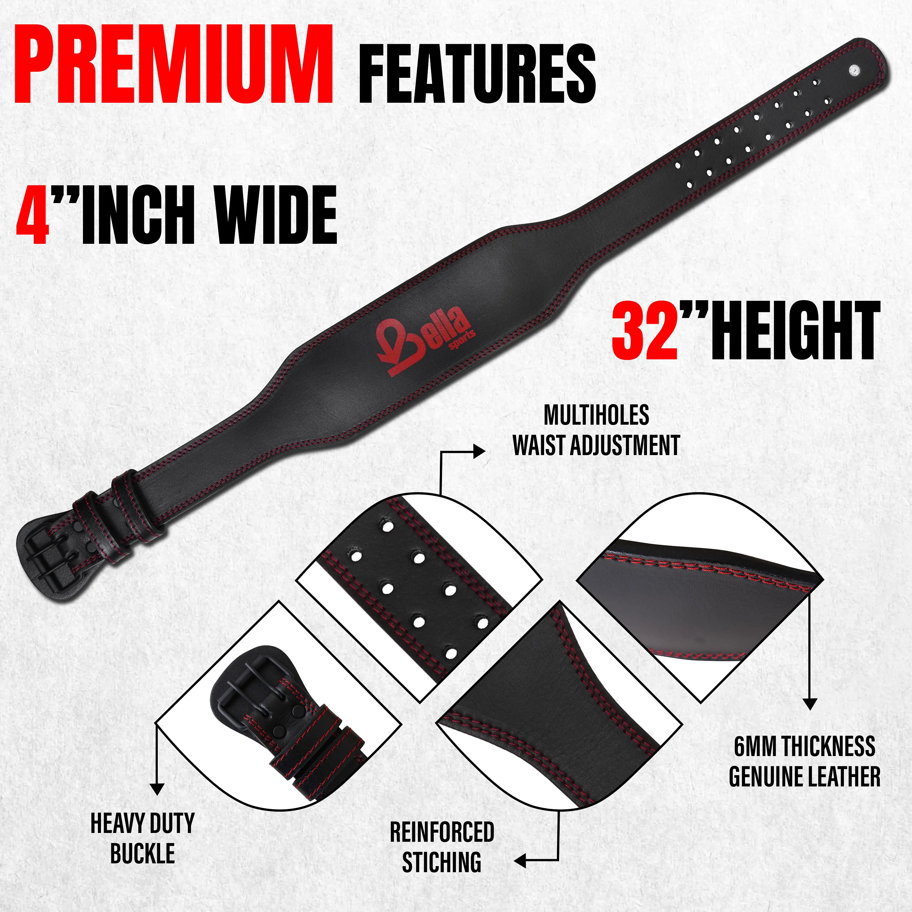 Upgrade your strength training with this premium leather weightlifting belt designed for serious lifters. Made from durable cowhide leather, this belt offers superior support and stability for your lower back during heavy lifts like squats and deadlifts.The 4-inch wide padded design ensures even pressure distribution, reducing injury risk while improving lifting performance. Featuring a heavy-duty steel double prong buckle and reinforced stitching, this belt is built for durability and long-term use.