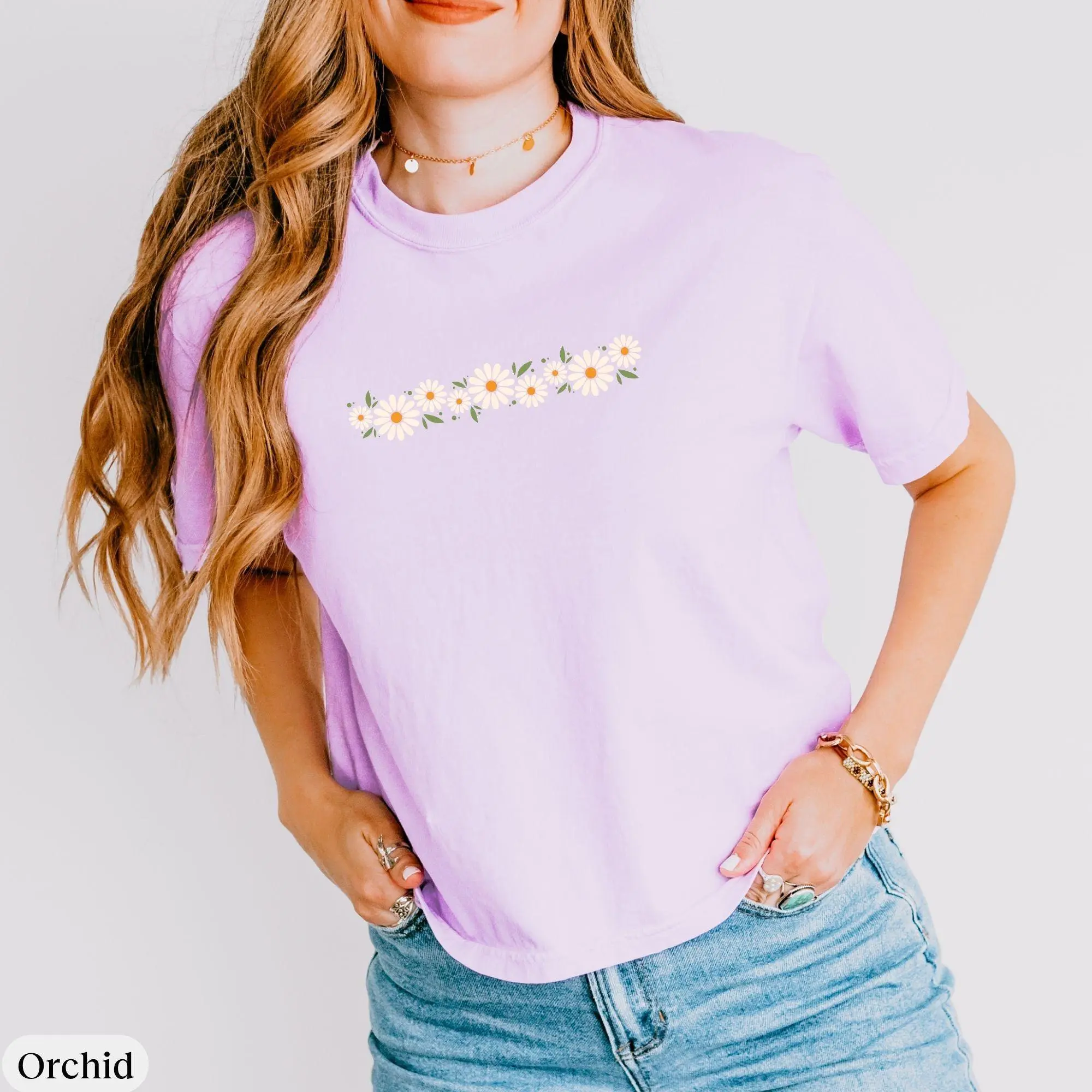 Comfort Colors Daisy Women's Boxy Tee Boho Flowers Shirt Cottagecore Flower Shirt Flower Crop Top Floral Boxy Tee Wildflowers Boxy Tee