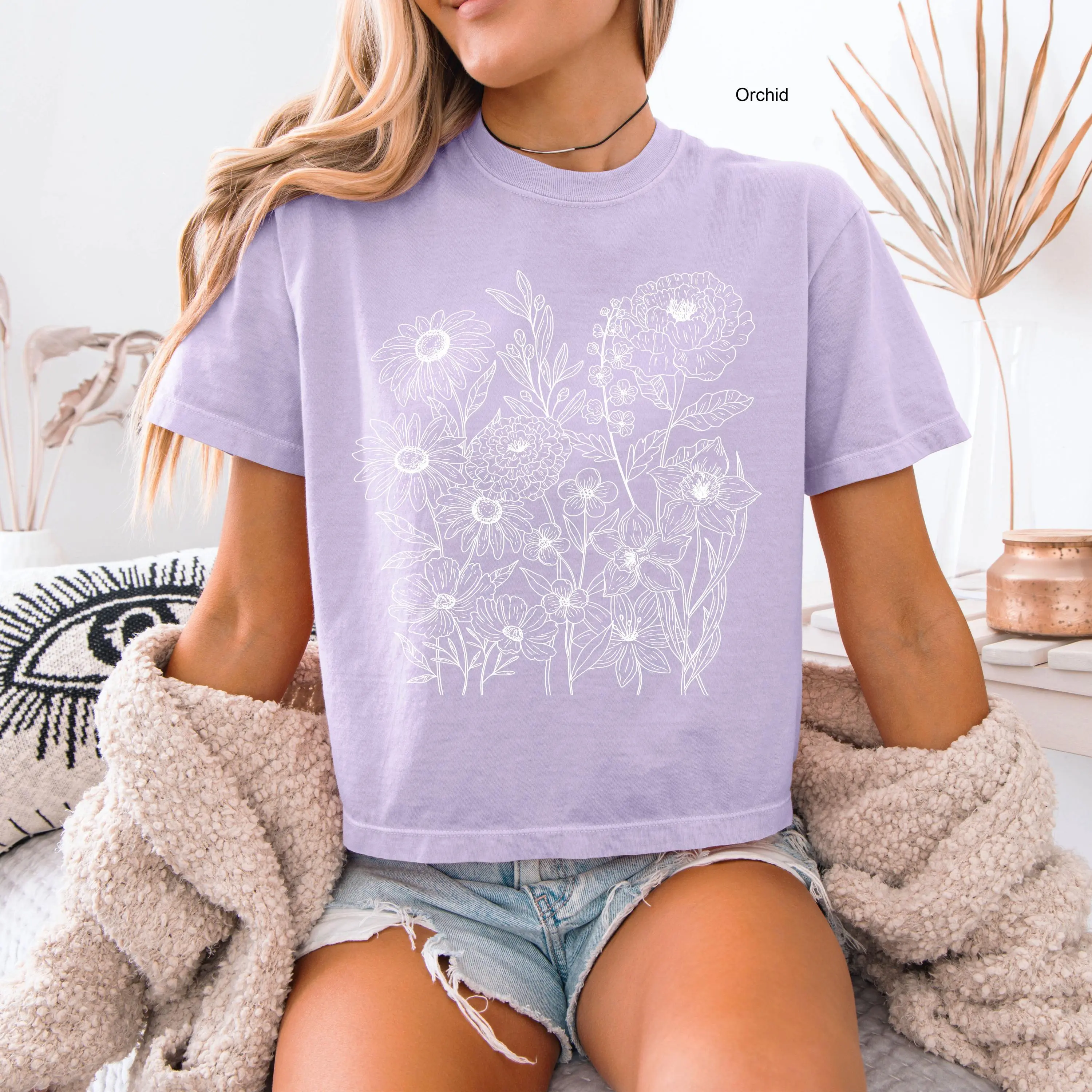 Comfort Colors Wild Flower Boxy Crop T-shirt - Crop Top Shirt Women's - Boxy Tee Shirt Flower Print - Boho Flower Shirt Women's Graphic Tee