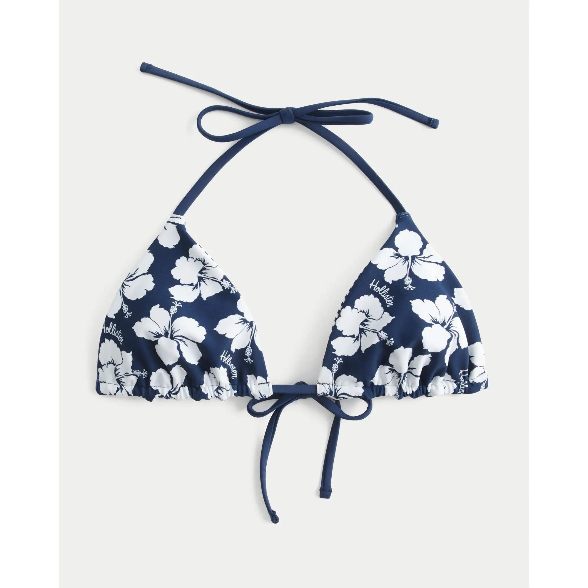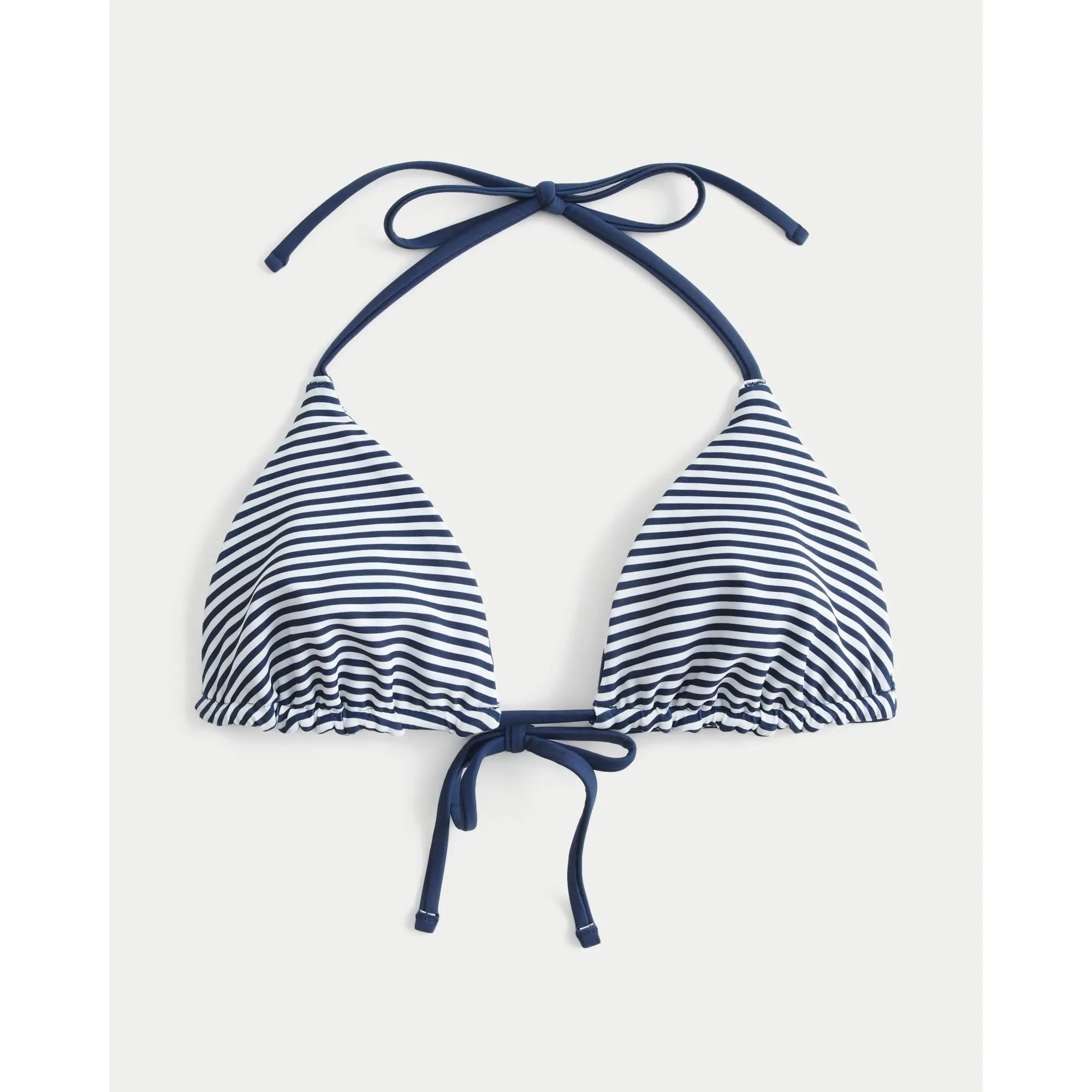 A cute reversible triangle bikini top with halter straps and a tie closure. Imported.