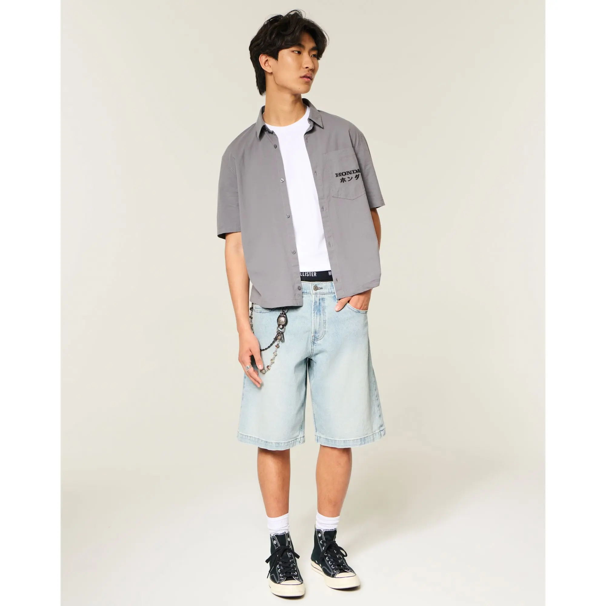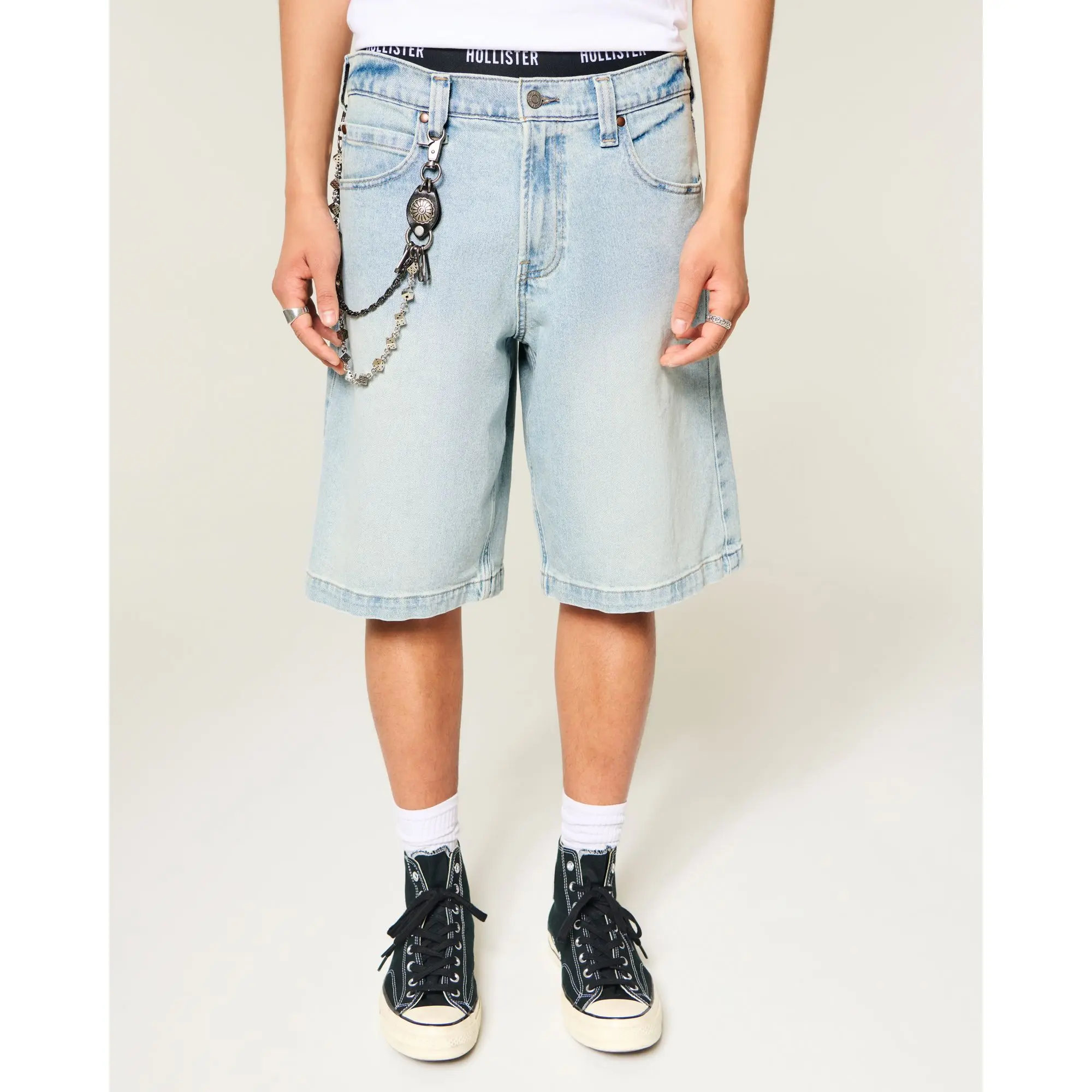Hollister Low-Rise Light Wash Graphic Baggy Jean Shorts