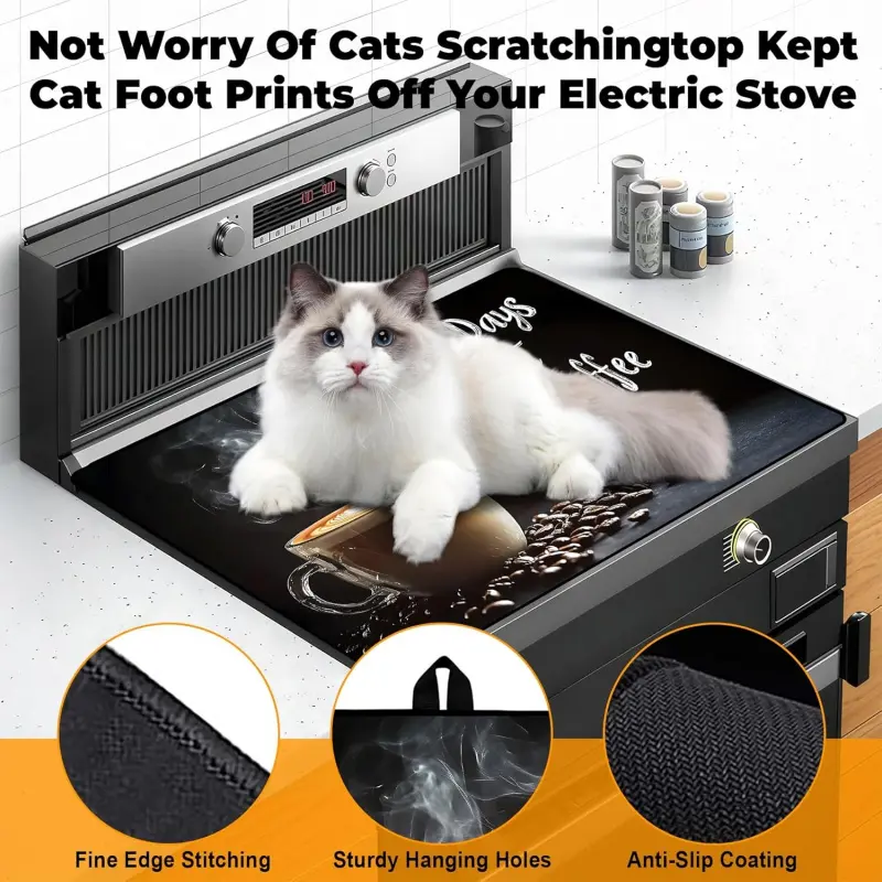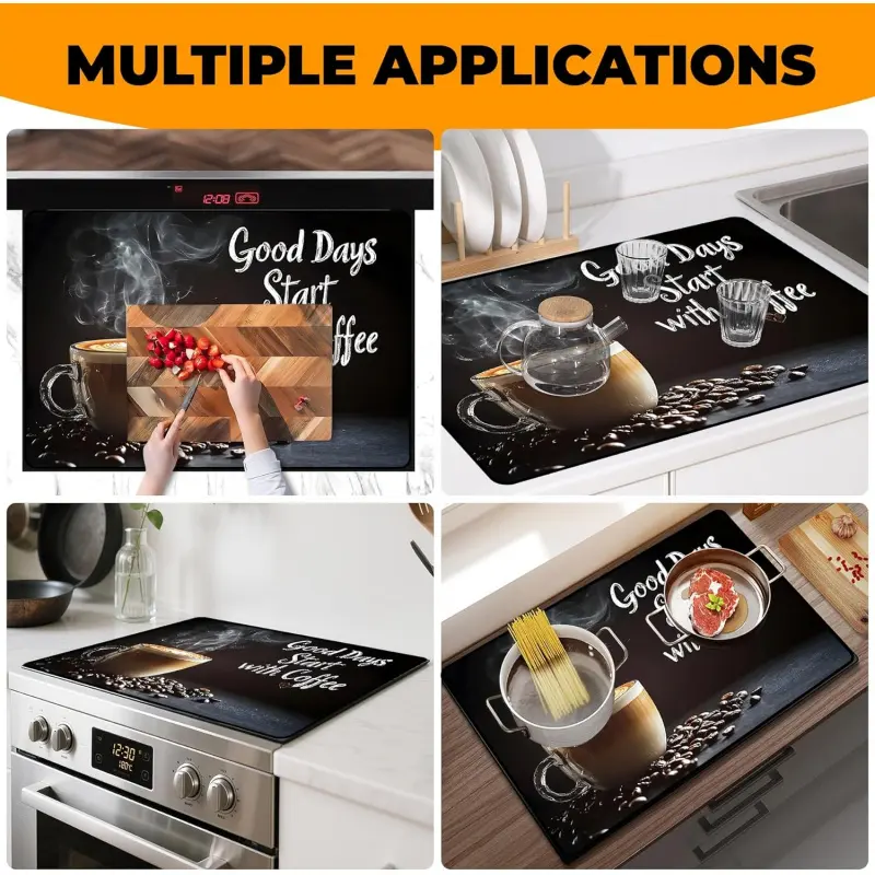 JOYFINITY Heat-Resistant Glass Stove Top Cover with Anti-Slip Rubber Coating – Electric Stove Protector, Scratch-Resistant, Expands Counter Space, Stylish Kitchen Decor (Cafe)