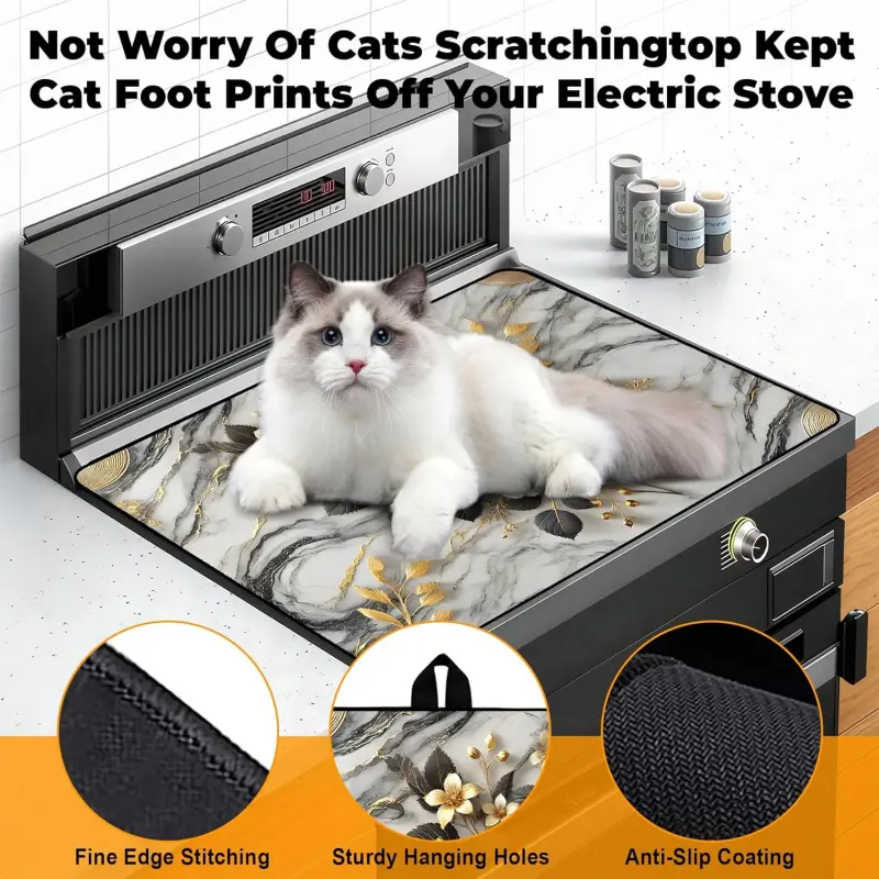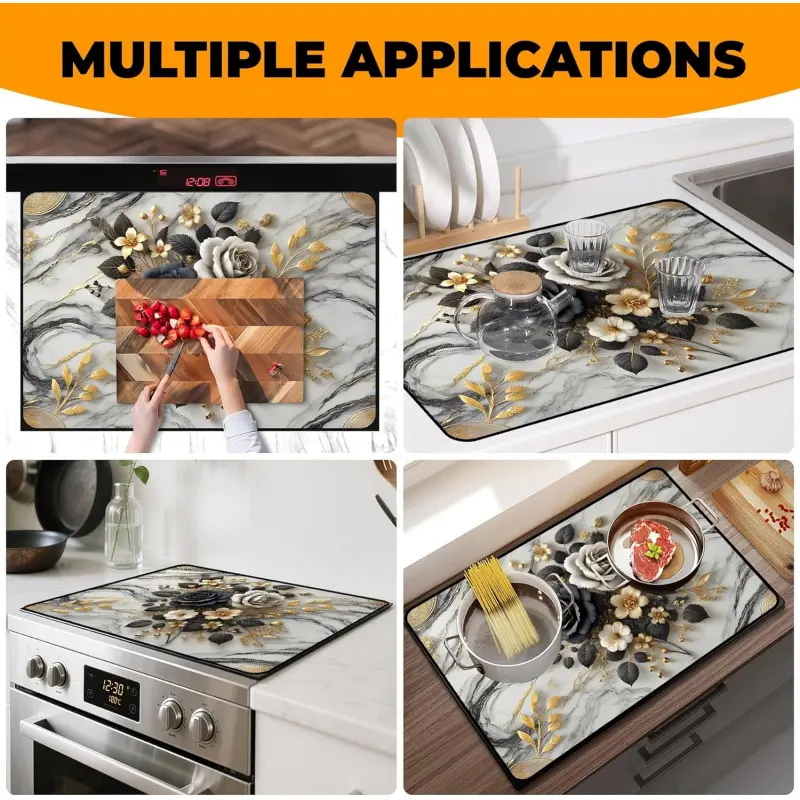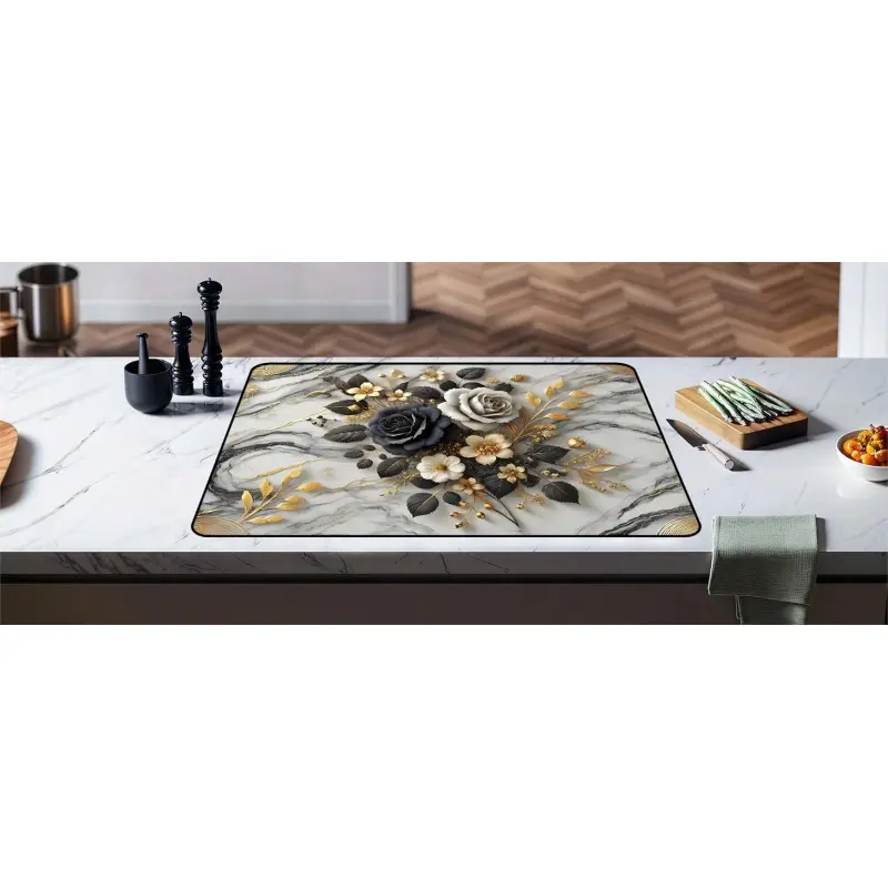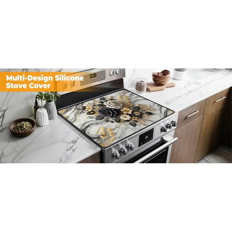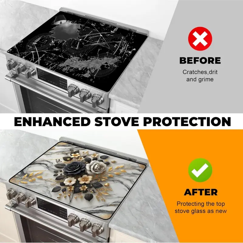 JOYFINITY Heat-Resistant Glass Stove Top Cover with Anti-Slip Rubber Coating – Electric Stove Protector, Scratch-Resistant, Expands Counter Space, Stylish Kitchen Decor (Rose, 28.4*20.5 in)