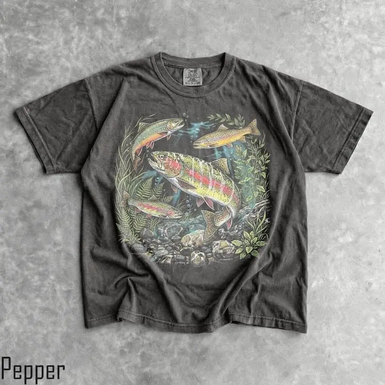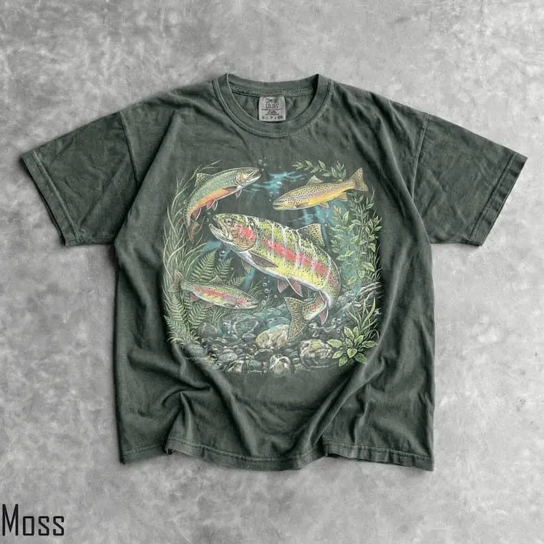 5. 90s River Wildlife T-Shirt - Men & Women's Unisex Graphic Tee - Vintage Rainbow Trout Tee - Fishing Shirts - Retro Fish Shirt - Nature Top