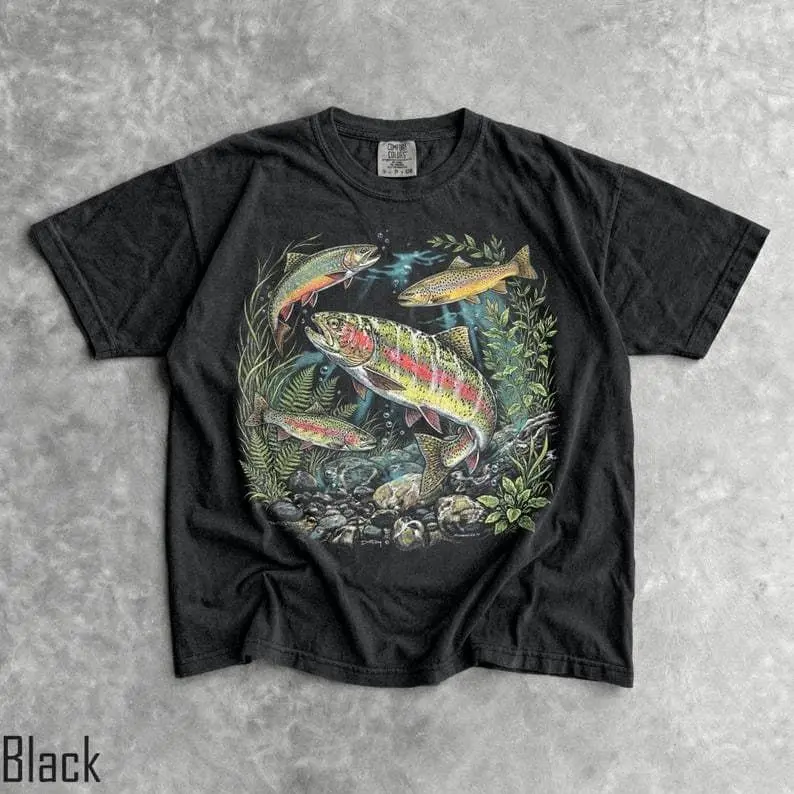 90s River Wildlife T-Shirt - Men & Women's Unisex Graphic Tee - Vintage Rainbow Trout Tee - Fishing Shirts - Retro Fish Shirt - Nature Top
