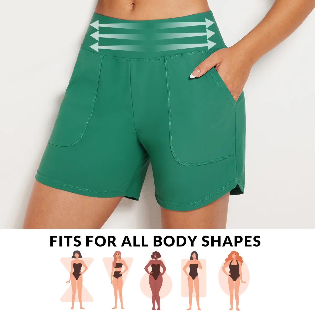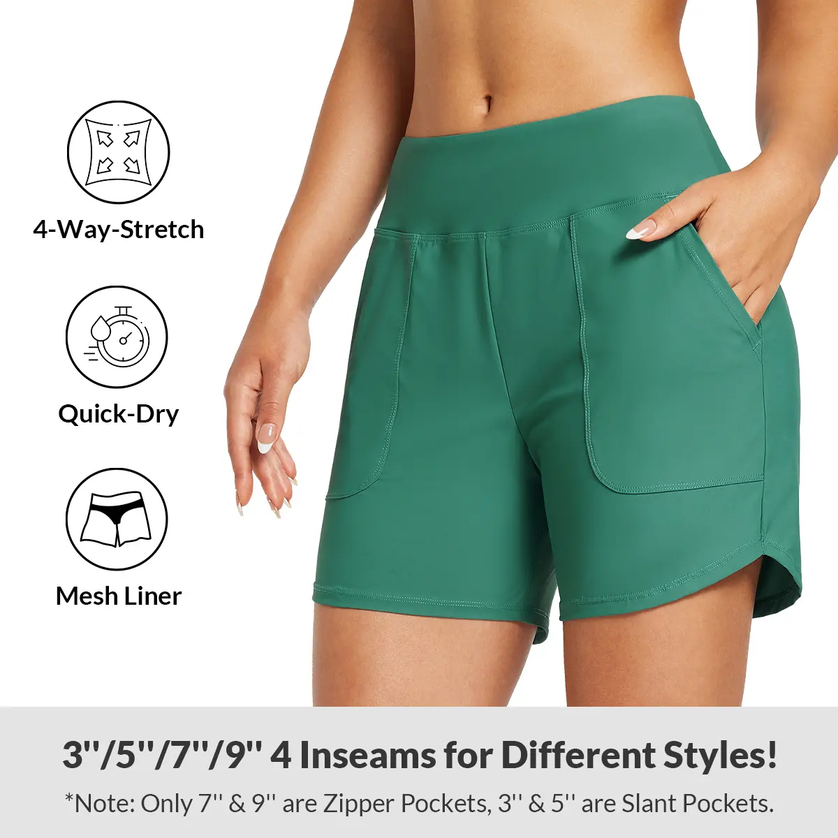 baleaf Women's High Waisted Lightweight 3''/5"/7''/9'' Board Shorts Swim/Running/Workout Quick Dry with Pockets Tankini Bottoms Bathing Suits Plus Size Bermuda Shorts Mesh Liner