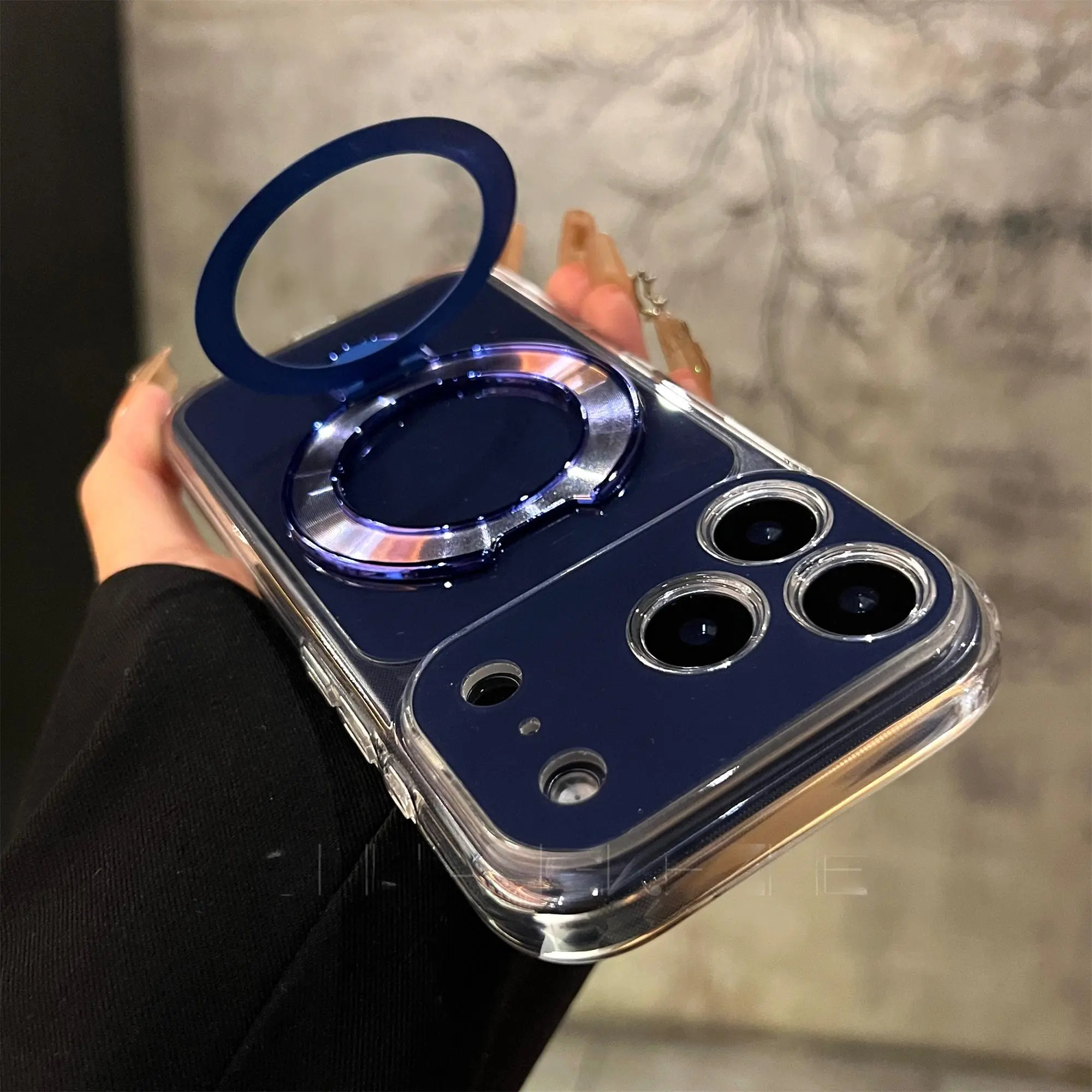 3-in-1 Invisible MagSafe Kickstand: The integrated electroplated ring serves 3 core functions: