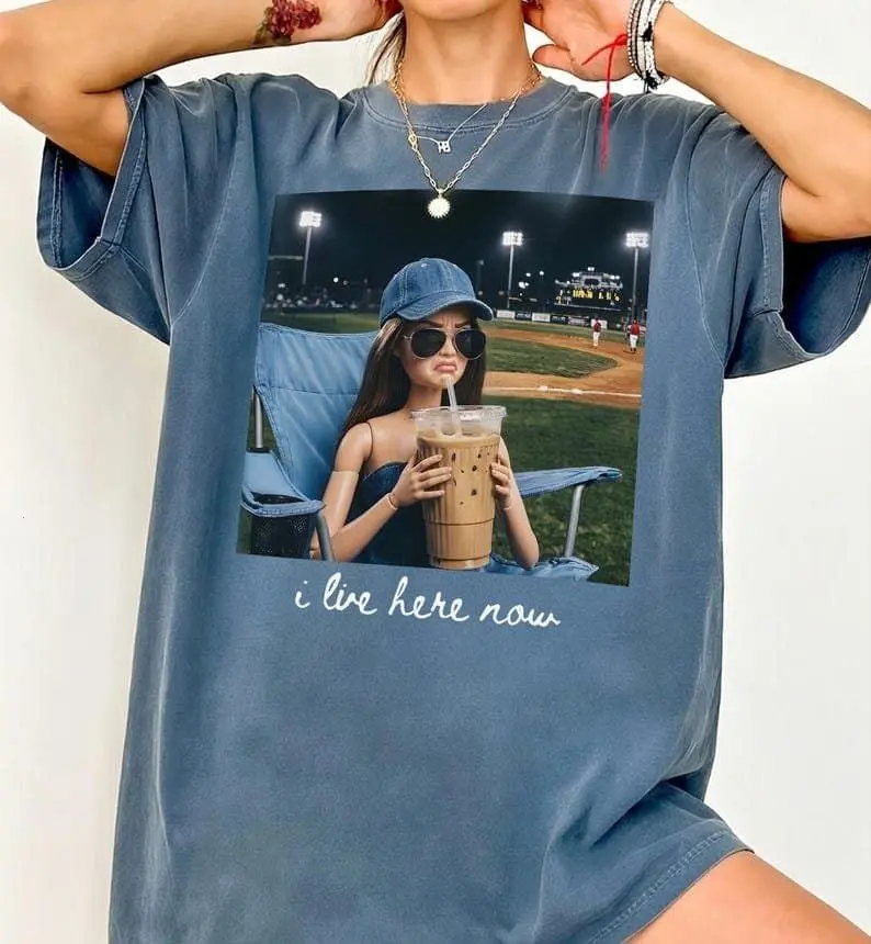 5. Funny Barbie Ballfield Dark Comfort Colors T-shirts, Funny I live Here Now Shirt, Softball Ball Mom Tee, Baseball Mama Tee