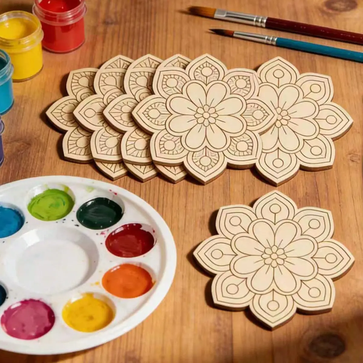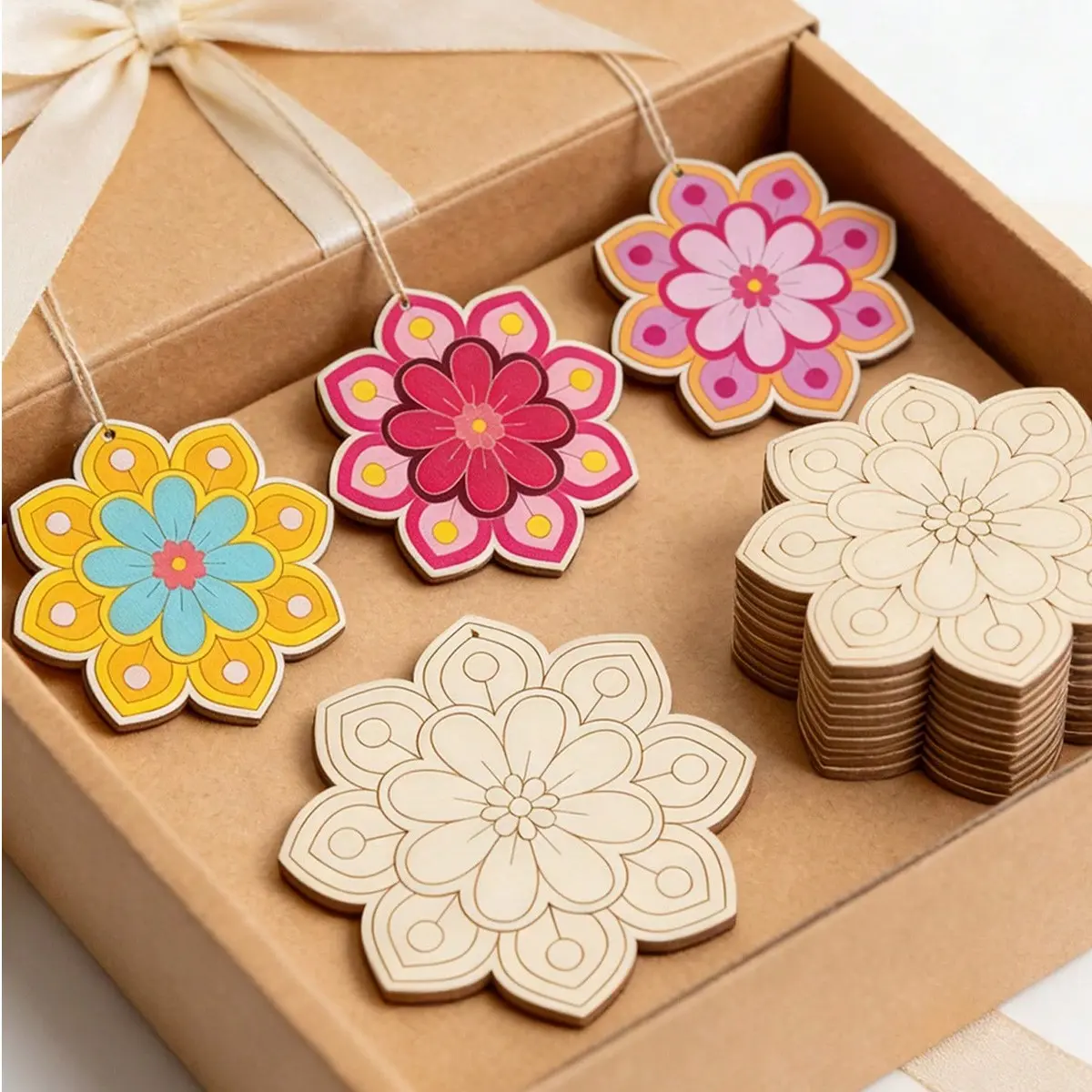 10 Wooden Petal Decorations, DIY Hand Painted, Unfinished Wood, Includes 12 Watercolor Pencils, Home Decor, Wedding, Holiday Decor