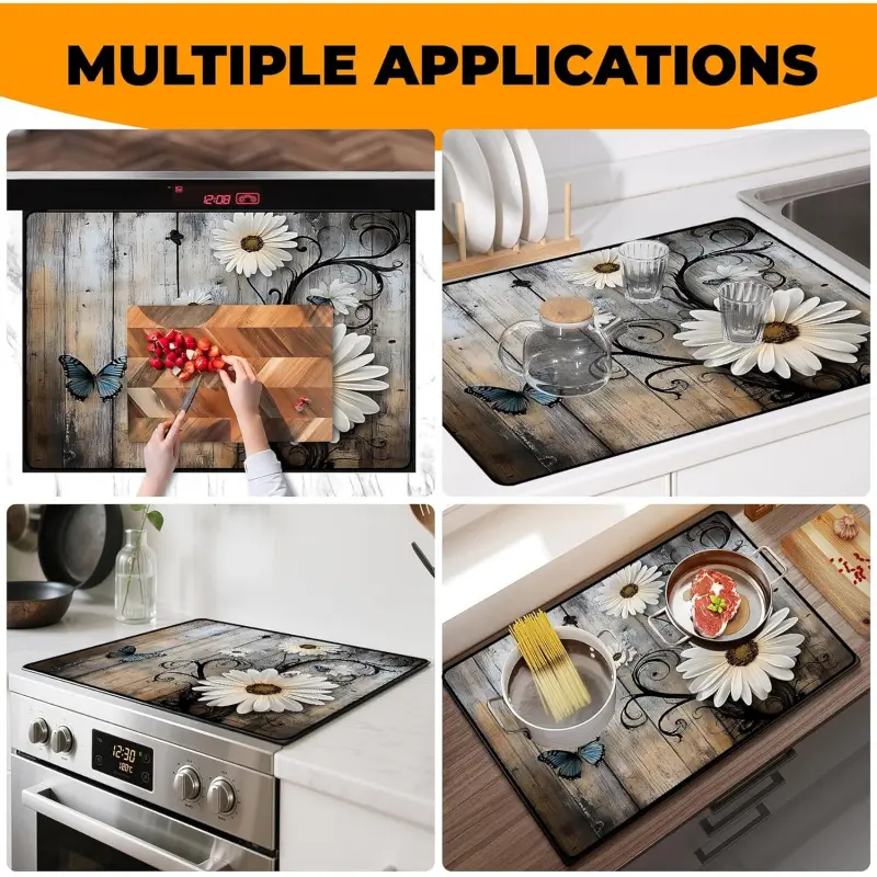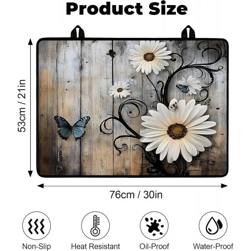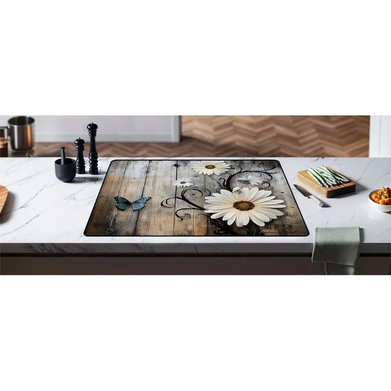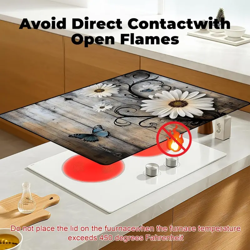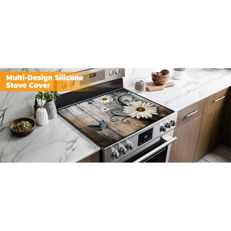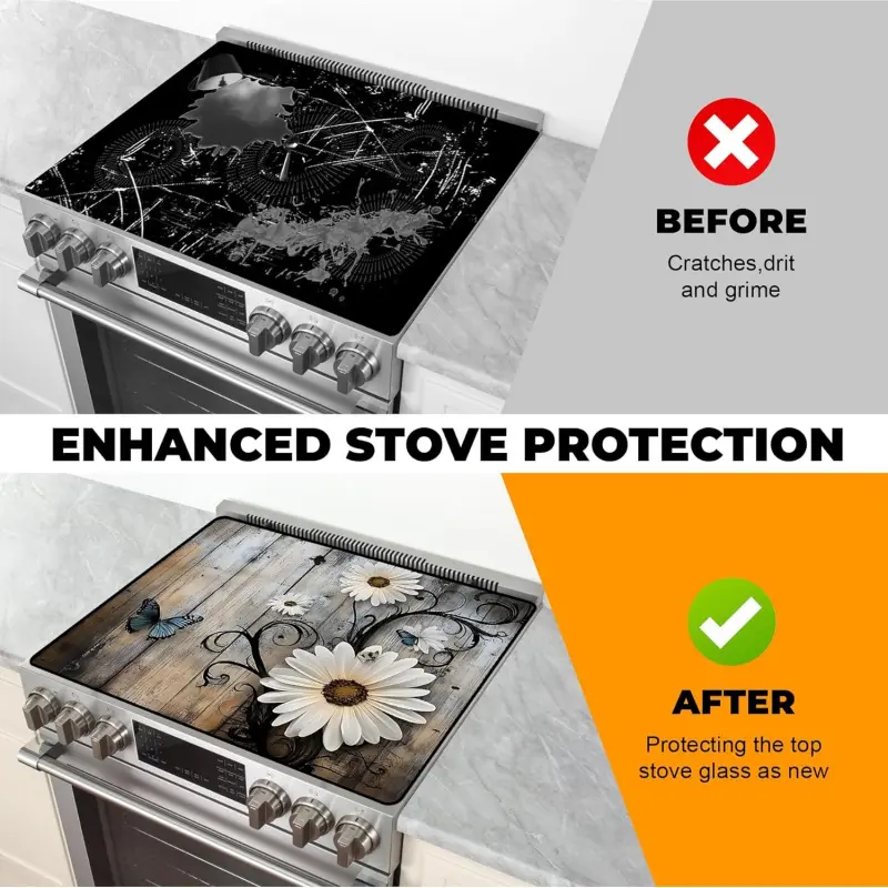 JOYFINITY Heat-Resistant Glass Stove Top Cover with Anti-Slip Rubber Coating – Electric Stove Protector, Scratch-Resistant, Expands Counter Space, Stylish Kitchen Decor (Daisy, 28.4*20.5 in)