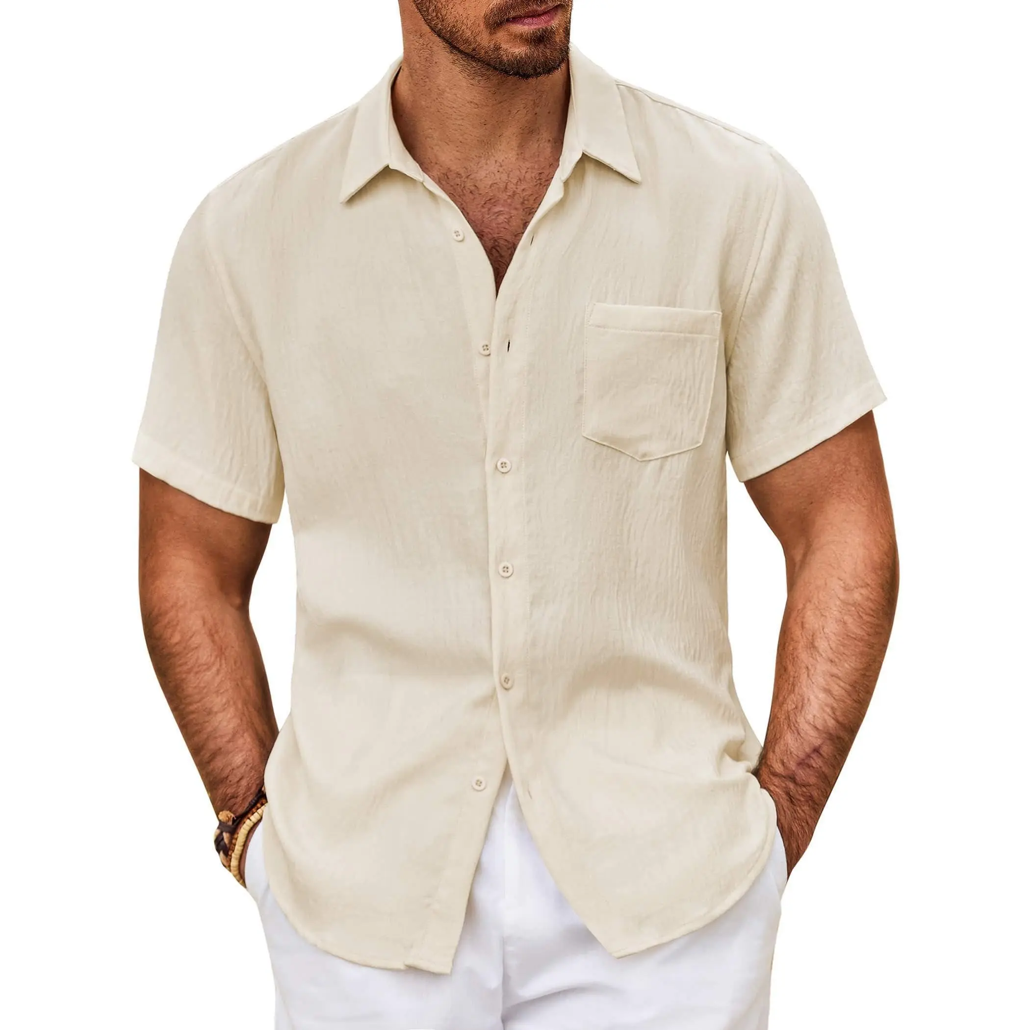 ·STYLISH MATCH: Available in a range of colors, this summer shirt allows for versatile wardrobe pairing; pair it with shorts for a relaxed beach vibe or dress it up with chinos for a more polished look during evening outings