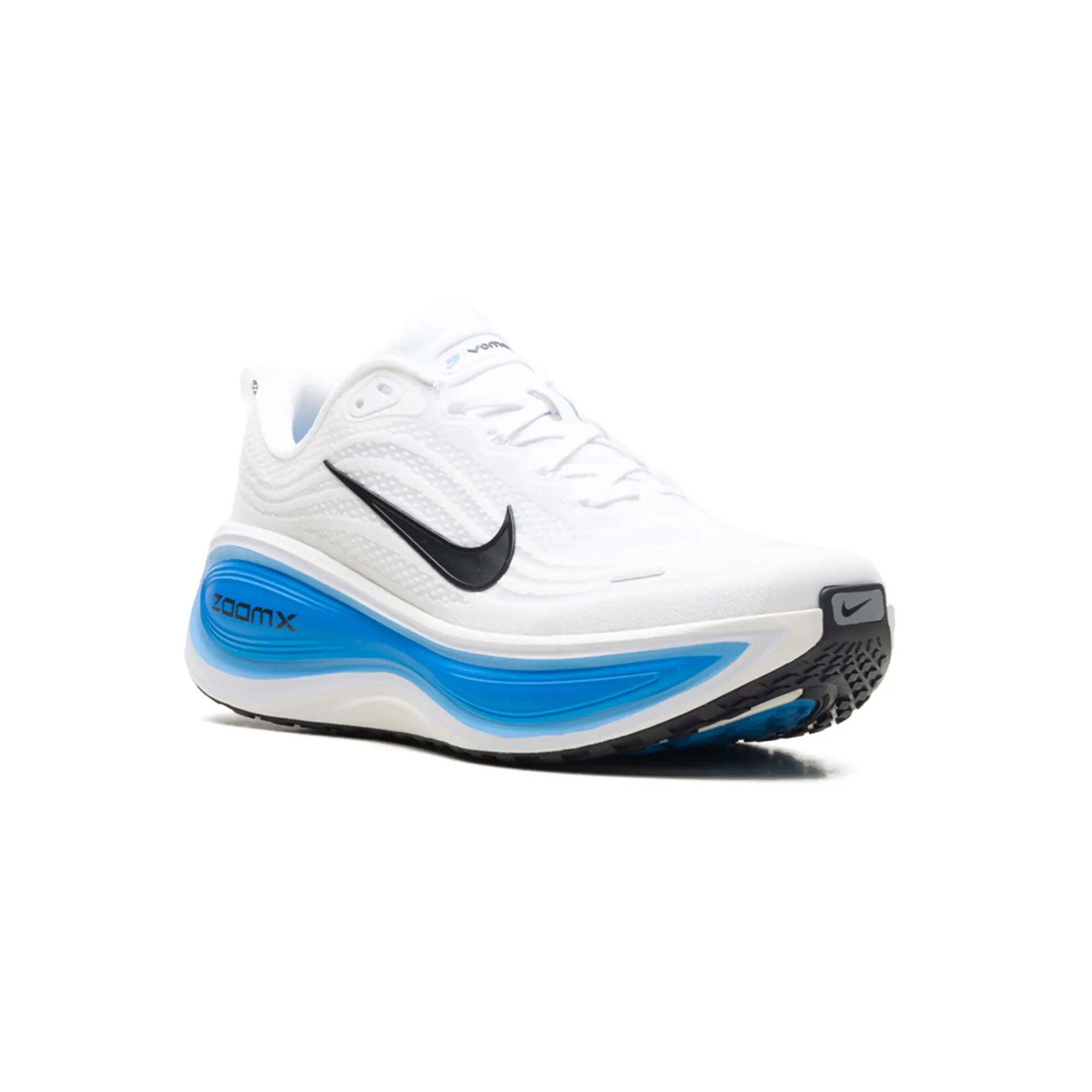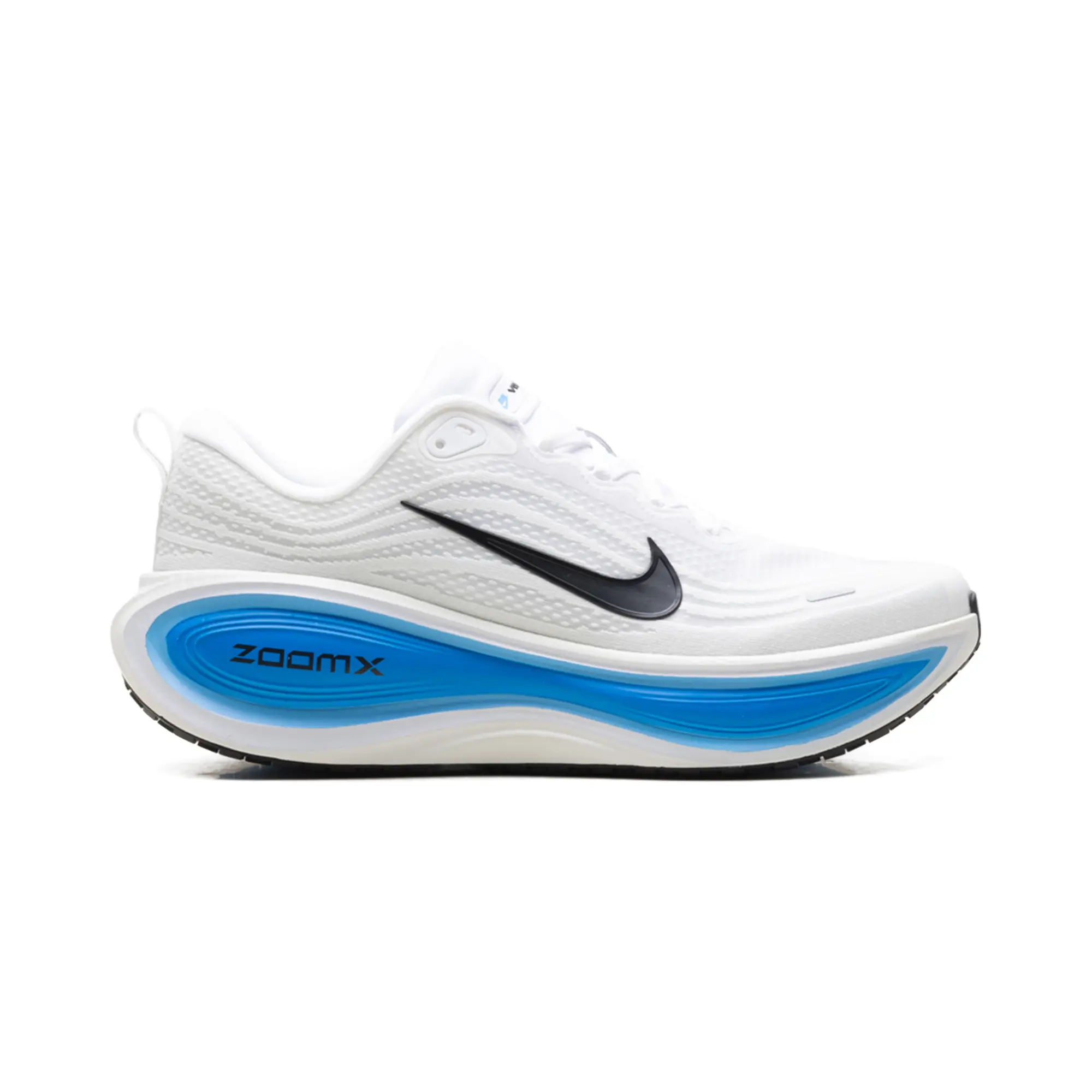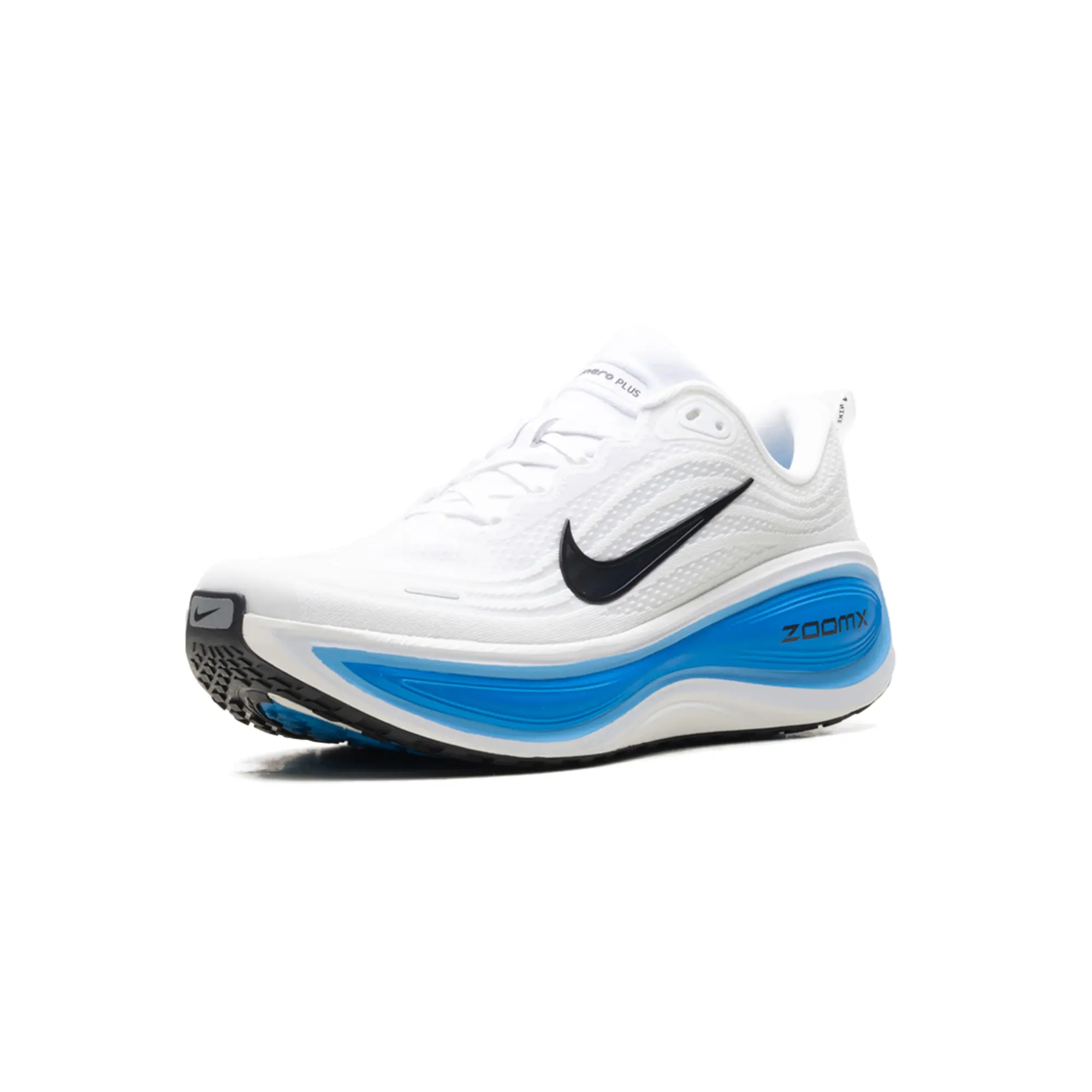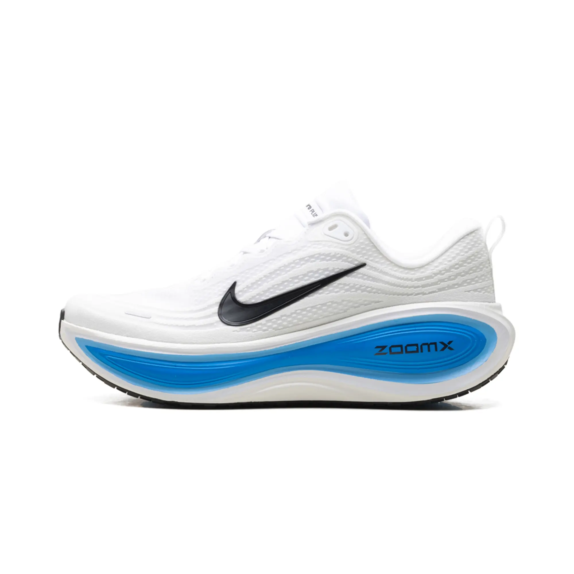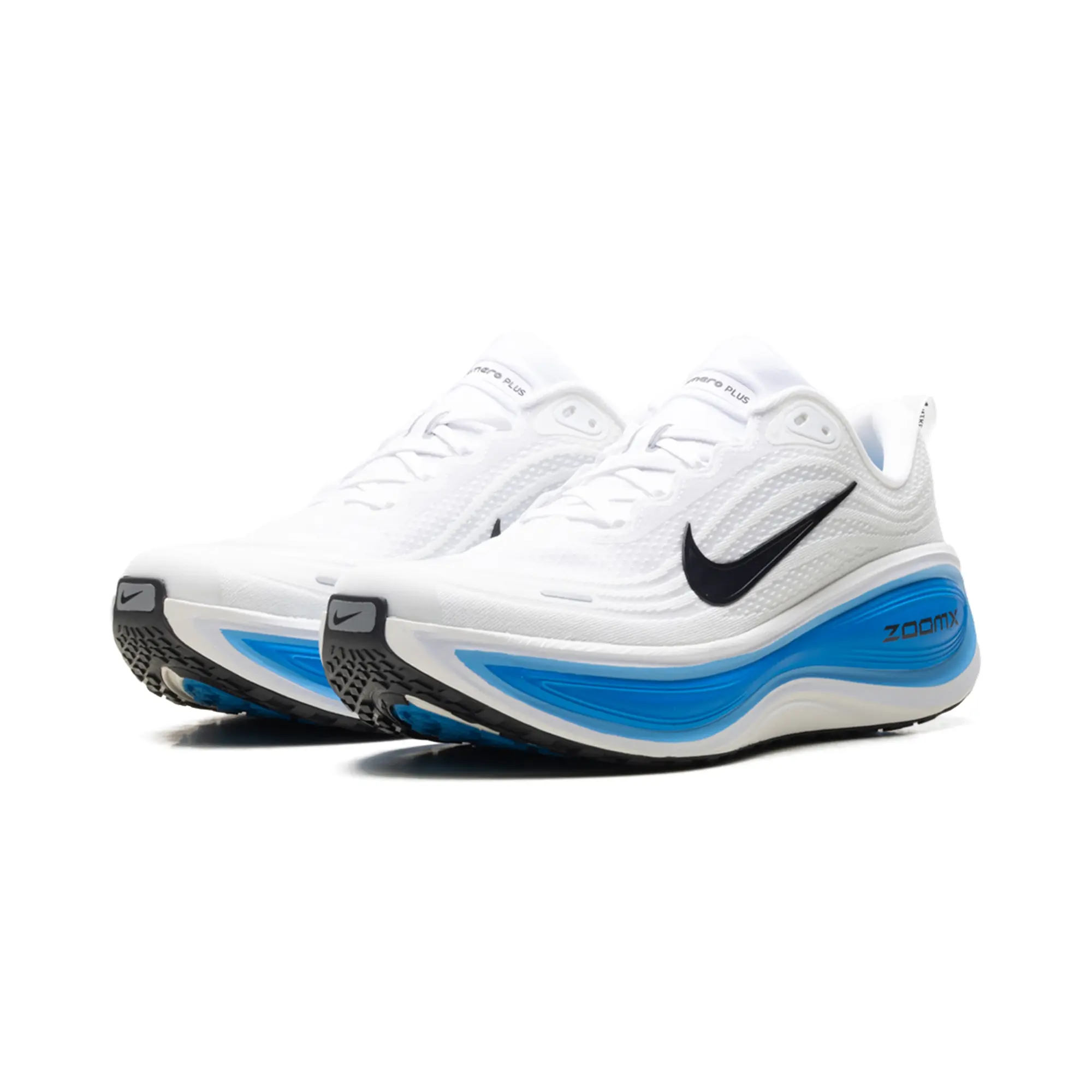The Nike Vomero Plus "White Blue Hero" delivers a clinical, high-status execution of the max-cushioning powerhouse, masterfully blending "Marathon-Core" heritage with a radical, futuristic technicality. This iteration features a premium landscape of breathable white engineered mesh with haptic-printed structural lines, providing a clean, multi-dimensional foundation for the model’s aerodynamic anatomical profile. The design is defined by its explosive strike, utilizing a specialized "Blue Hero" ZoomX foam carrier and high-contrast black Swoosh branding that injects a layer of high-octane luxury into the deconstructed performance build. Grounded by a massive, sculpted midsole featuring dual-density React and ZoomX technologies for elite energy return and finished with a precision-engineered traction outsole, this release successfully pairs the Vomero’s aggressive DNA with a sophisticated, "Sky-Vapor-Elite" aesthetic.