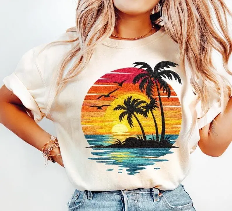 Comfort Colors Sunset Beach Shirt, Tropical Palm Tree Shirt, Summer Vacation Tee, Ocean Sunset Shirt, Coastal Aesthetic Shirt