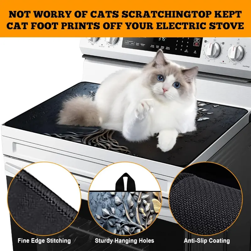 JOYFINITY Multi-Design Stove Top Cover for Glass/Electric Stoves - 3-in-1 Heat-Resistant Protector Mat, Non-Slip Drying Rack