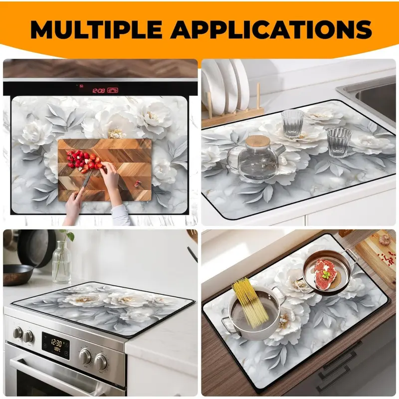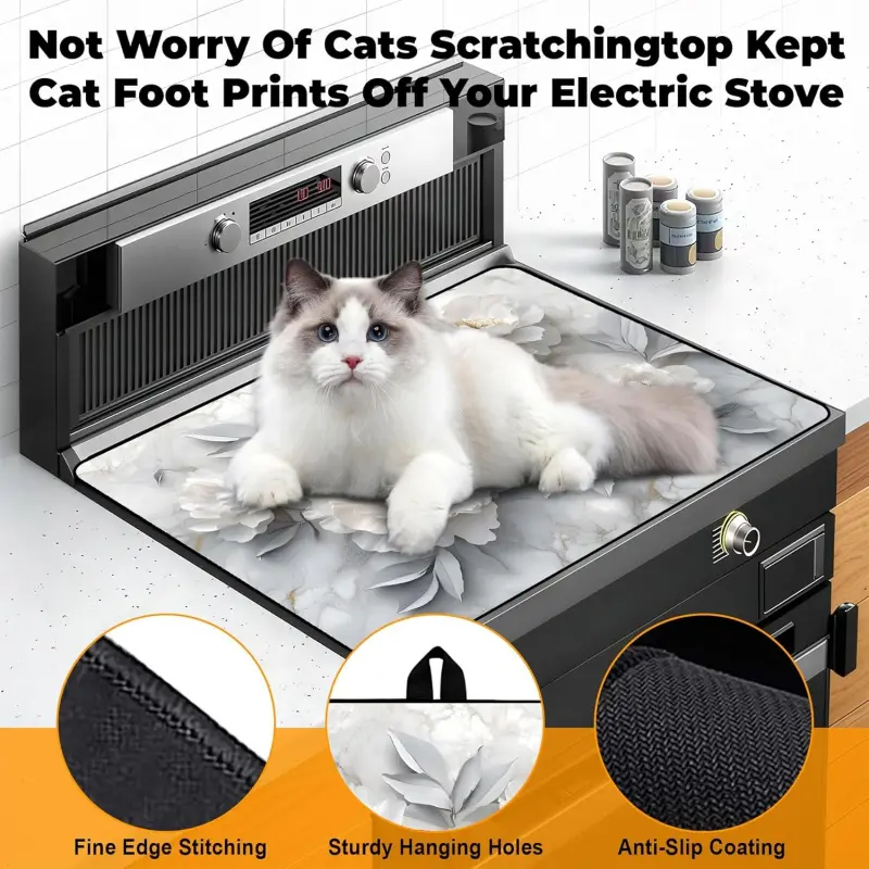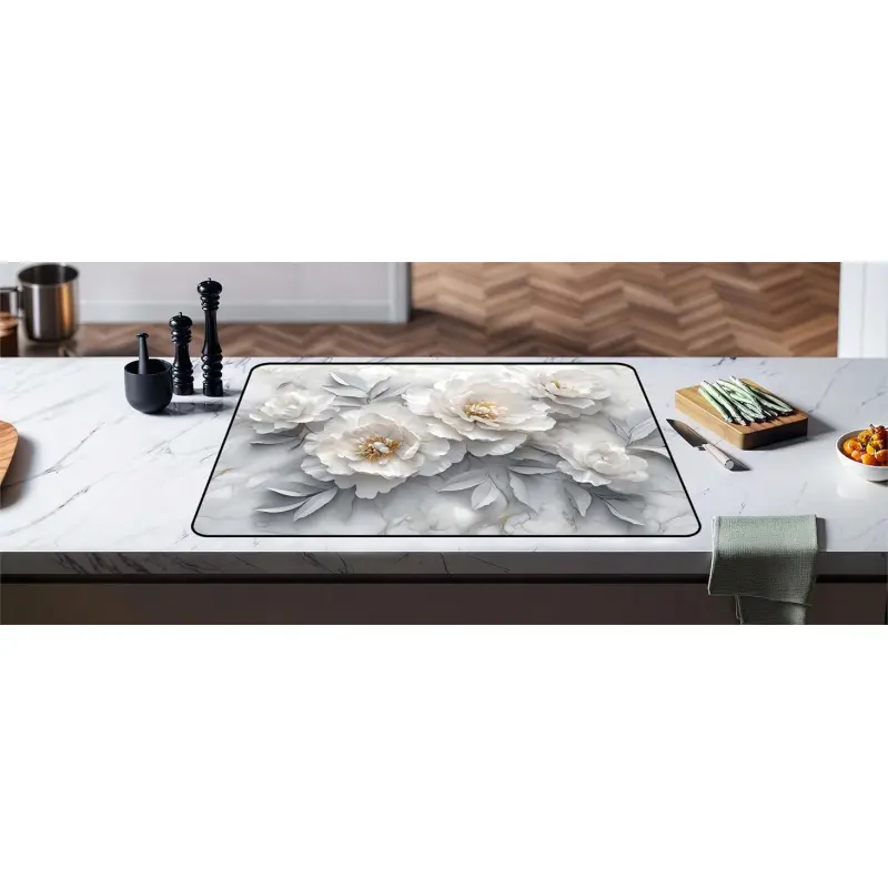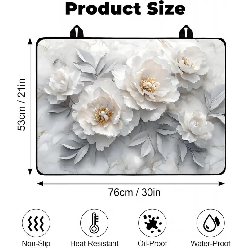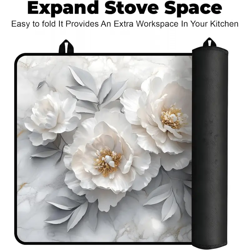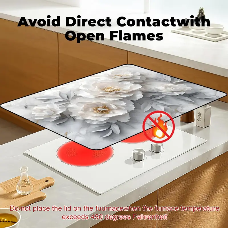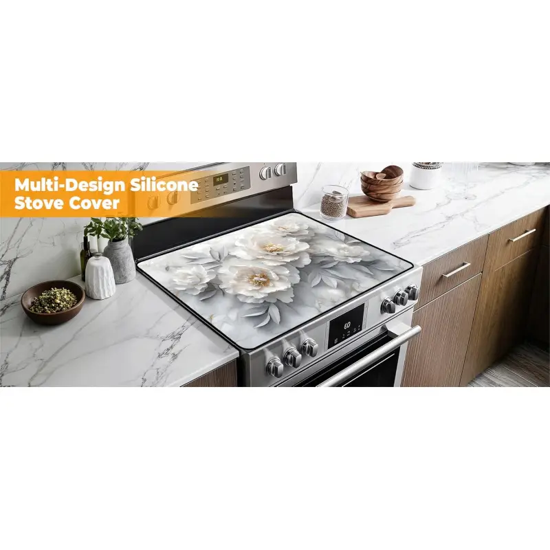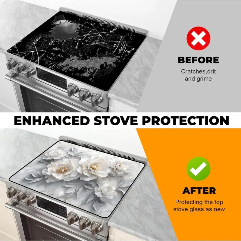JOYFINITY Heat-Resistant Glass Stove Top Cover with Anti-Slip Rubber Coating – Electric Stove Protector, Scratch-Resistant, Expands Counter Space, Stylish Kitchen Decor (Peony, 28.4*20.5 in)